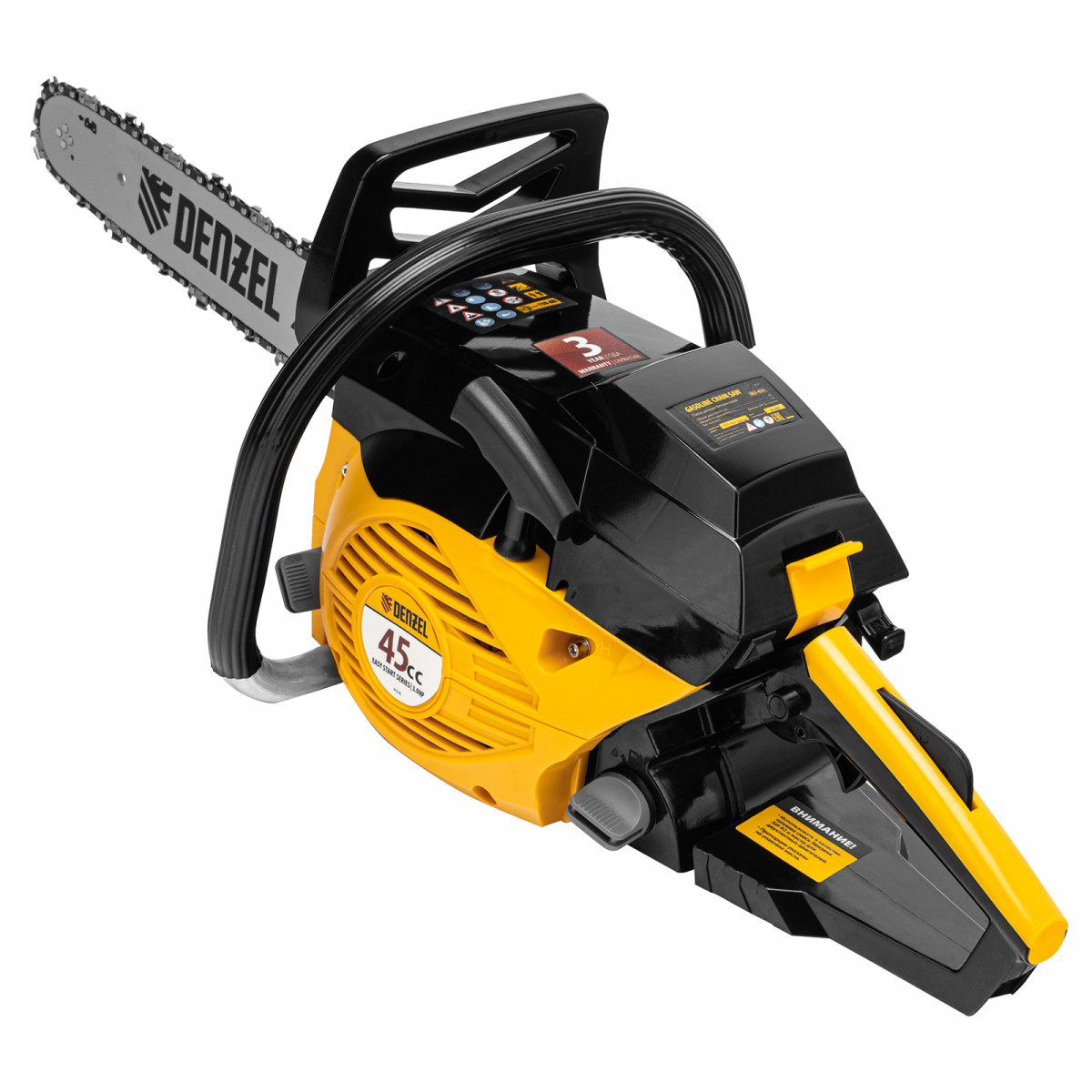 Пила цепная бензиновая DGS-4516, шина 40 см, 45 см3, 3 л.с, шаг 3/8, паз 1.3 мм, 57 звеньев Denzel