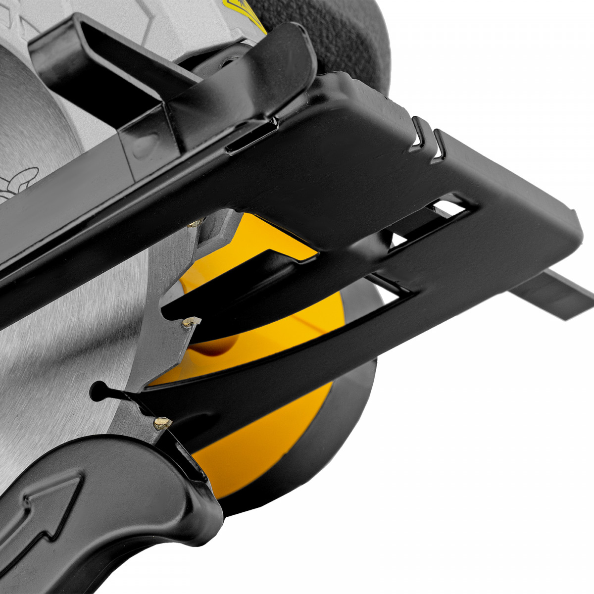 • Безопасность — подвижный защитный кожух закрывает верхнюю часть пильного диска и исключает контакт с лезвием