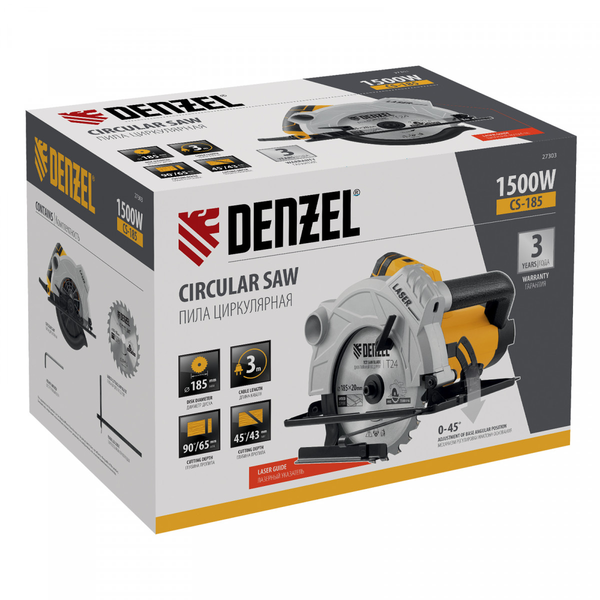 Пила циркулярная CS-185, 1500 Вт, 185 мм Denzel