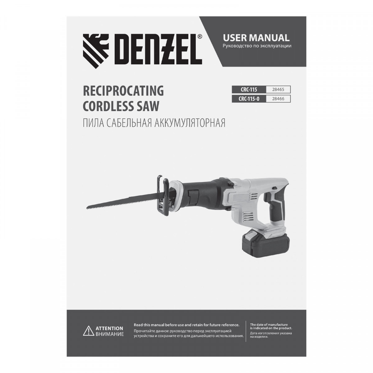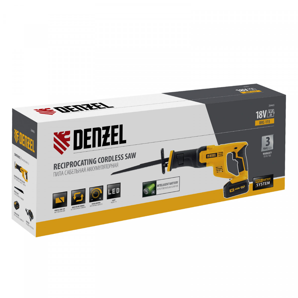 Пила сабельная аккумуляторная CRC-115, 18В Li-Ion Denzel