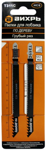 Пилки для лобзика Т311C по дереву,грубый рез 126х100мм(90 рабочая) (2 шт) Вихрь