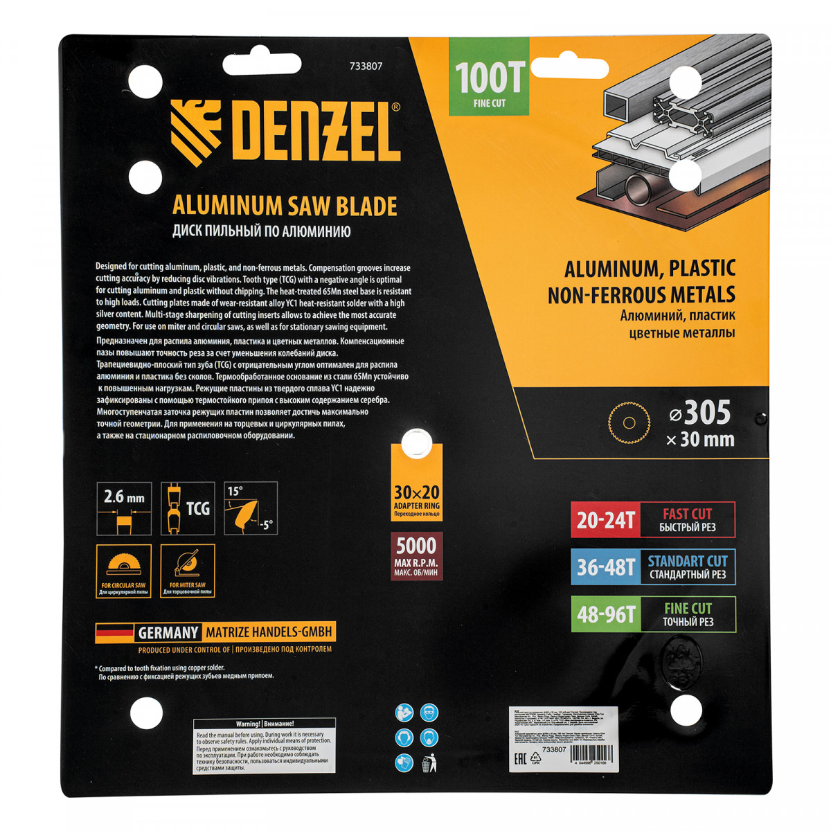 Пильный диск по алюминию ф305 х 30 мм, 100 зубьев Denzel