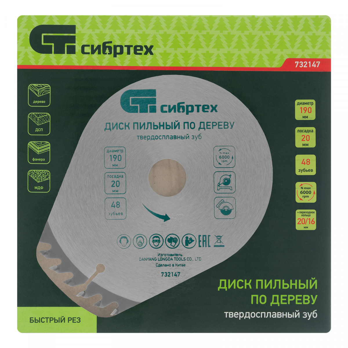 Пильный диск по дереву Сибртех 732147 диаметром 190 х 20 мм, с 48 зубьями и переходным кольцом 20/16, предназначен для распила древесины мягких и твердых пород, фанеры, ДСП, МДФ. Используется с циркулярными и торцовочными пилами с посадочным диаметром 20 мм. Переходное кольцо 20/16 позволяет при необходимости изменить размер посадки. Мелкие зубья обеспечивают точный рез с чистыми кромками. Диск подходит для бытового применения.