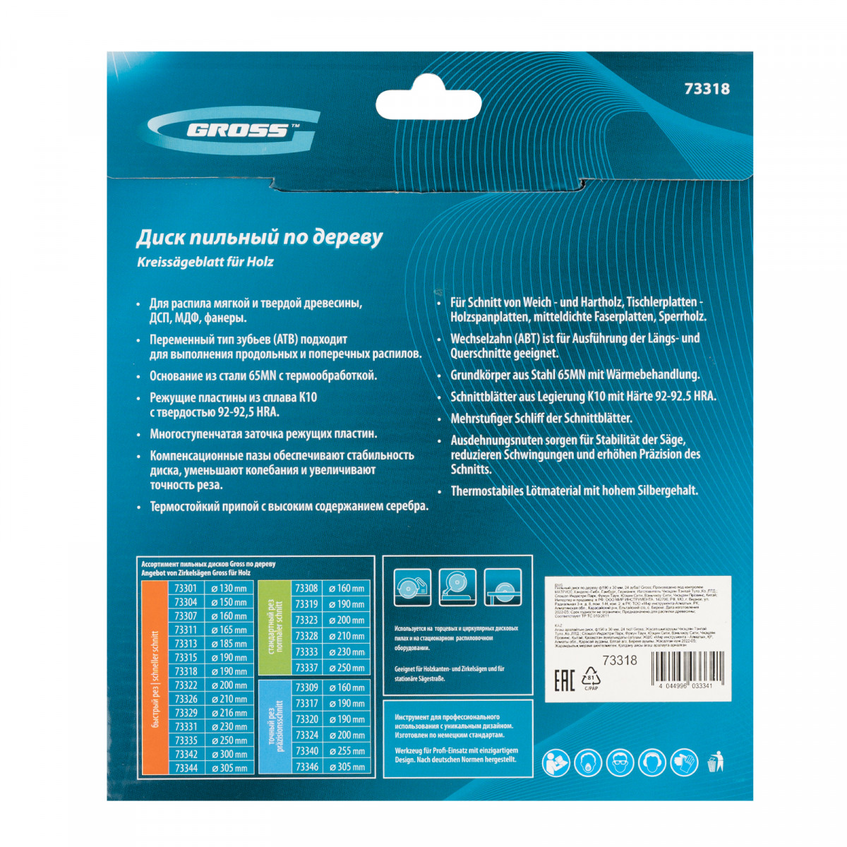 Пильный диск по дереву 190 x 30 x 24Т Gross