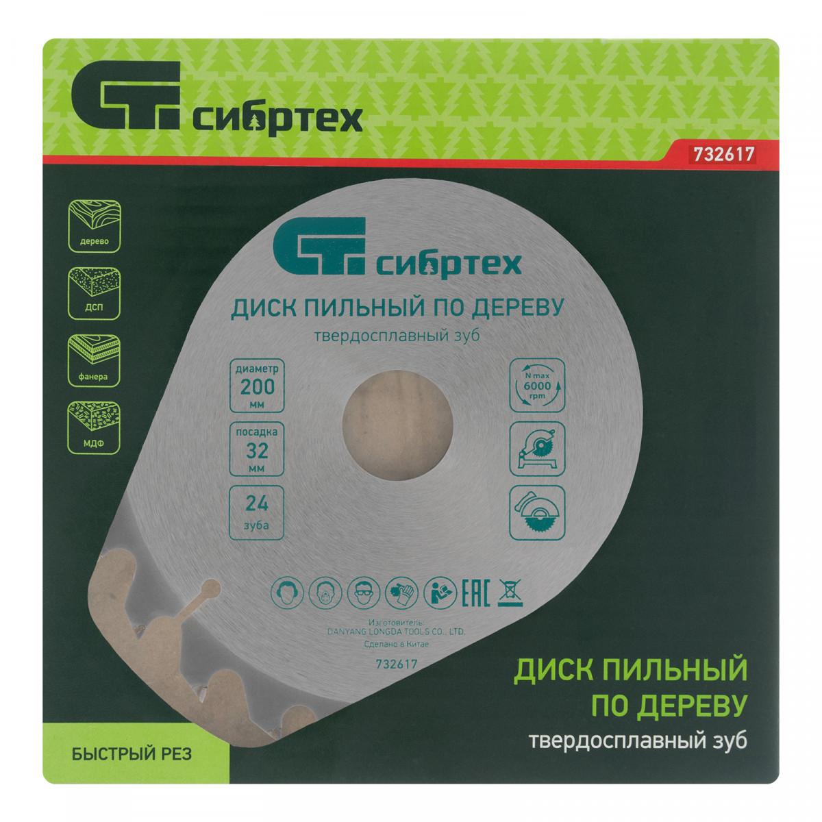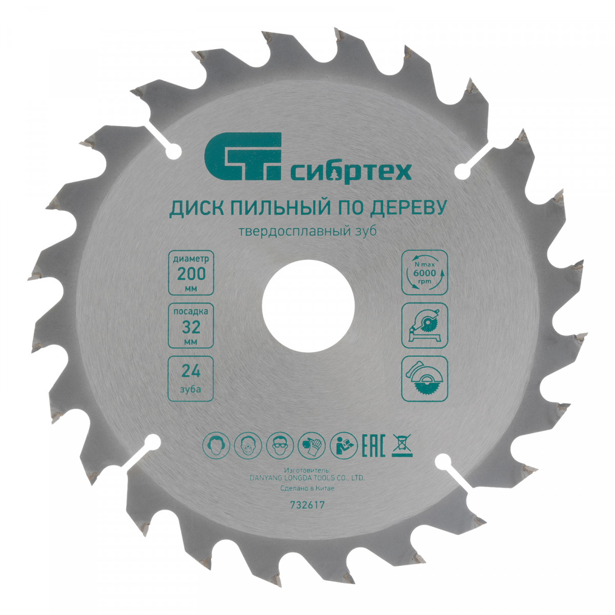 Пильный диск по дереву, 200 х 32 мм, 24 зуба, кольцо 30/32 Сибртех