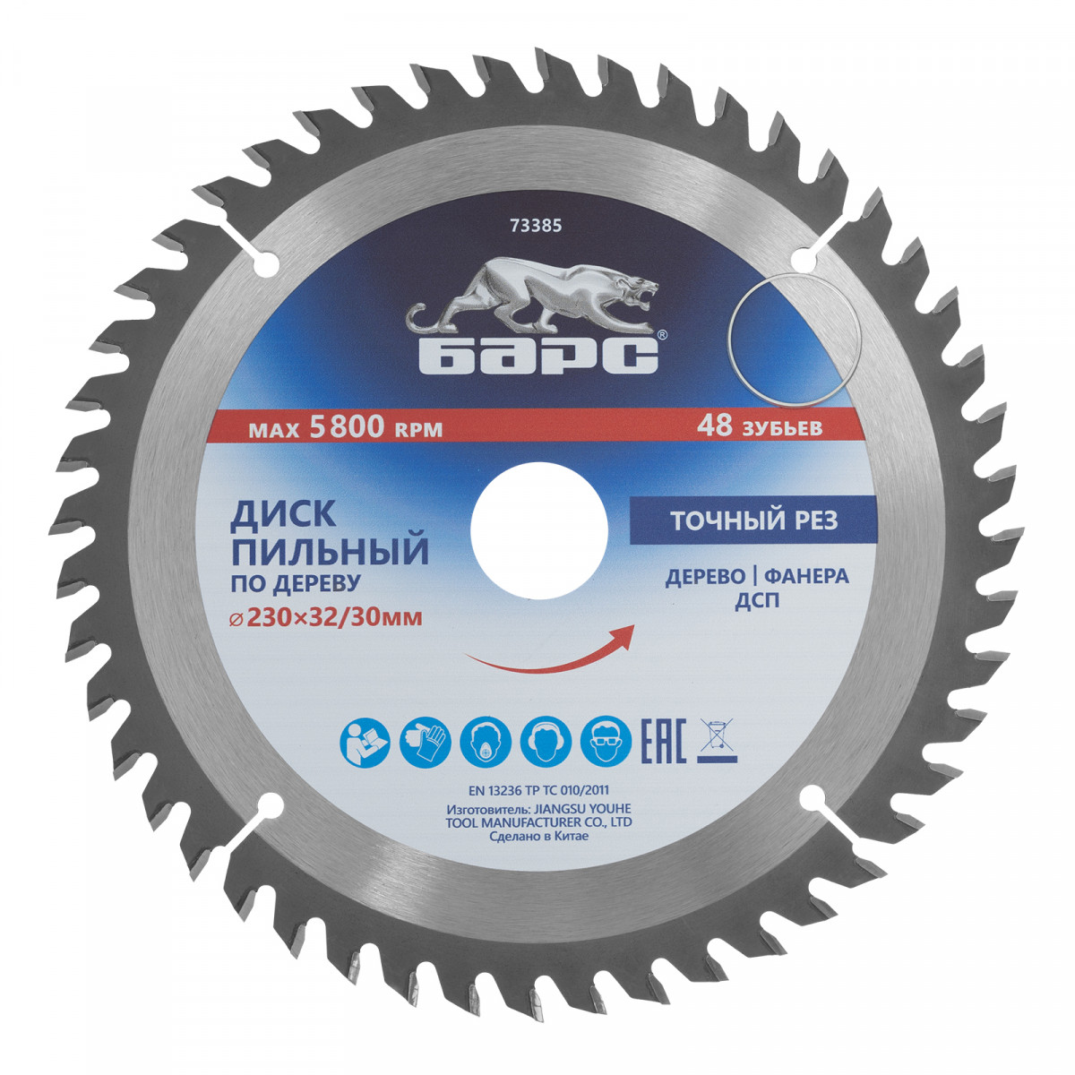 Пильный диск по дереву 230 x 32/30 мм, 48 твердосплавных зубъев Барс