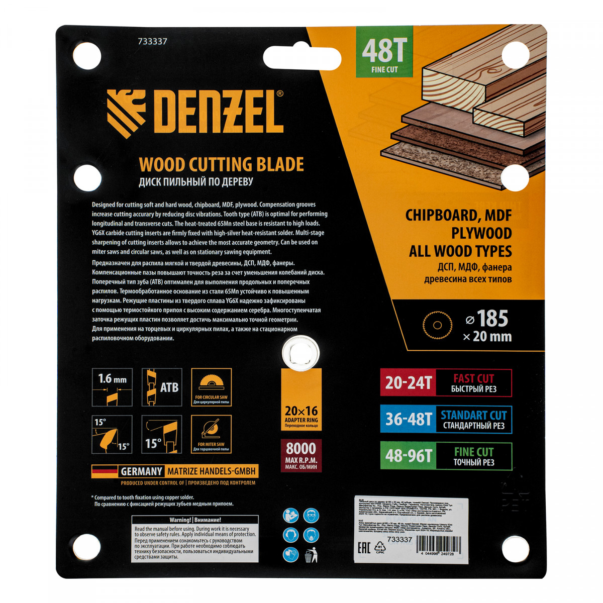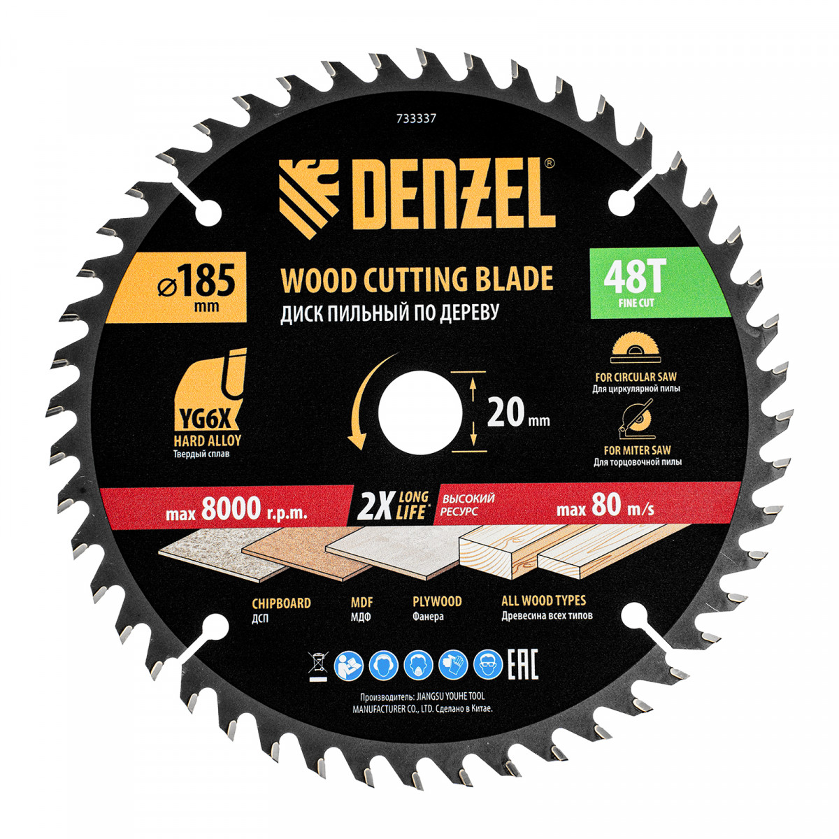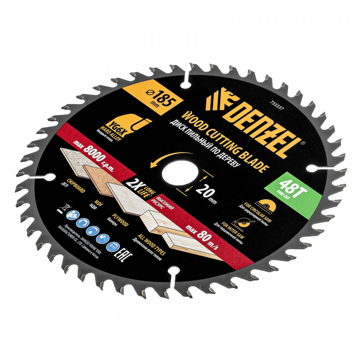Пильный диск по дереву ф185 х 20 мм, 48 зубьев, тонкий Denzel