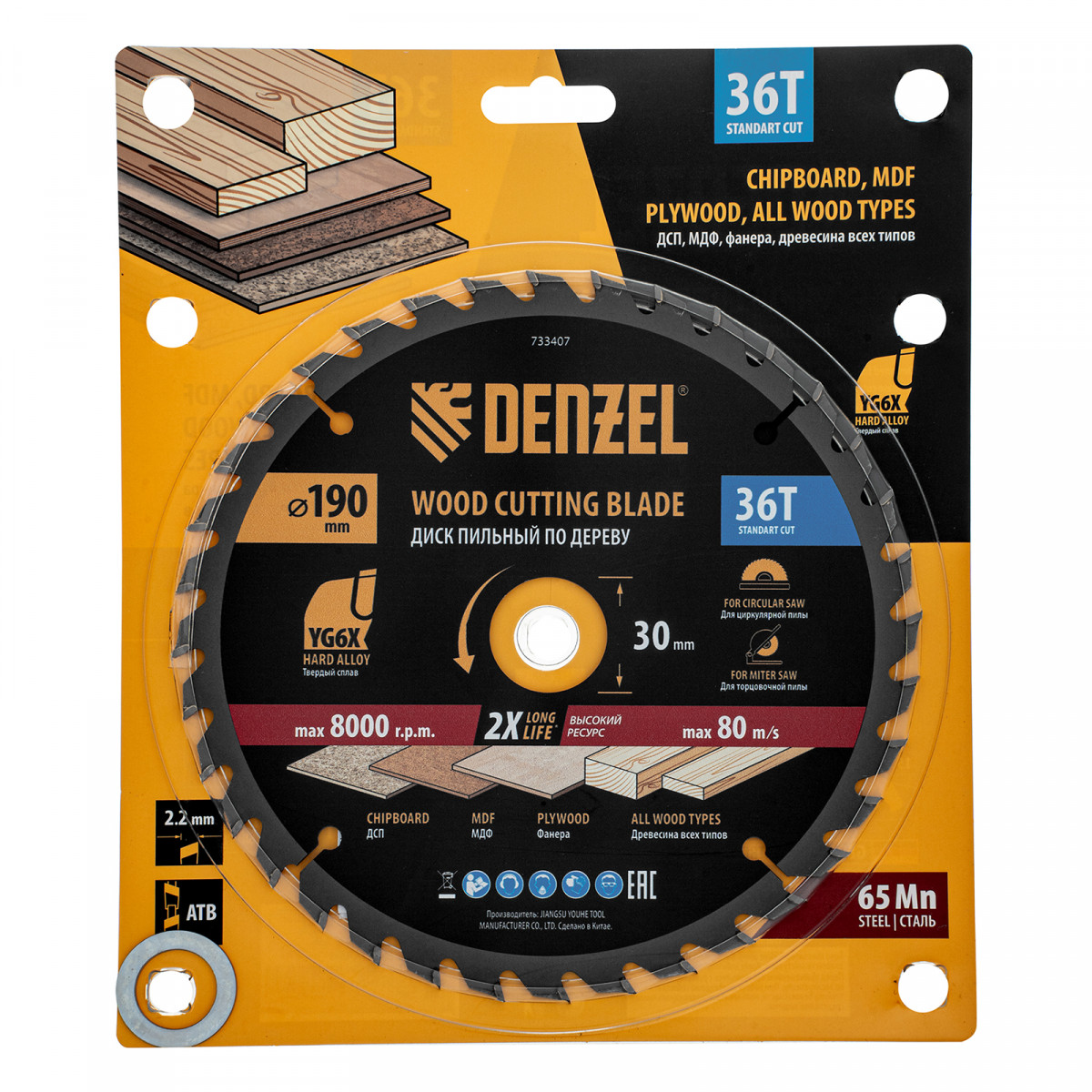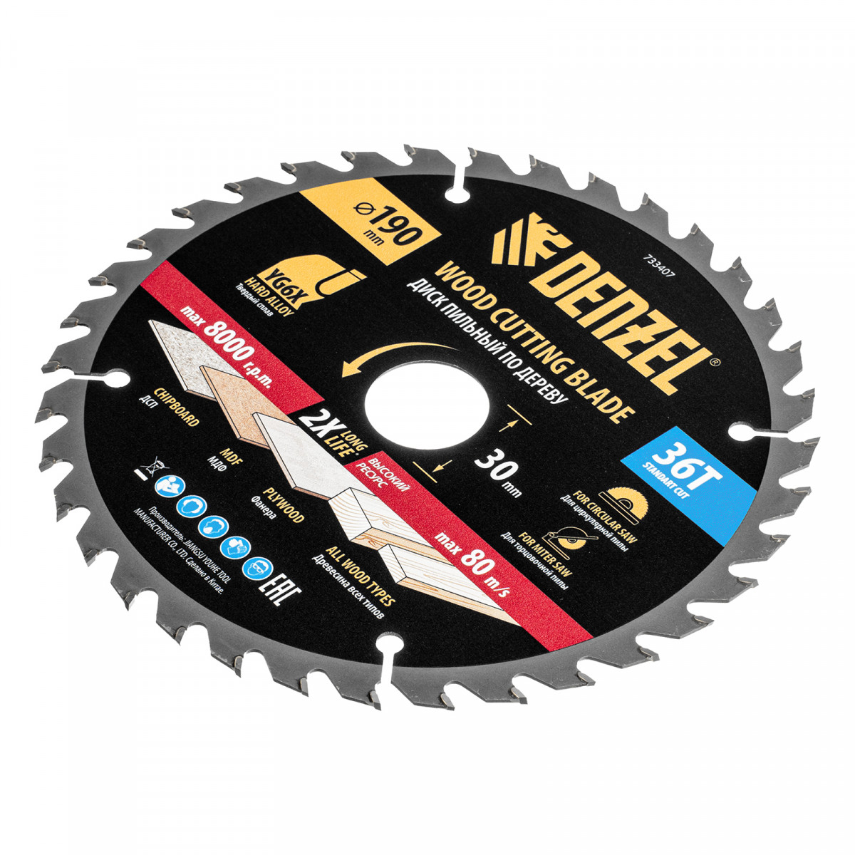 Пильный диск по дереву ф190 х 30 мм, 36 зубьев Denzel