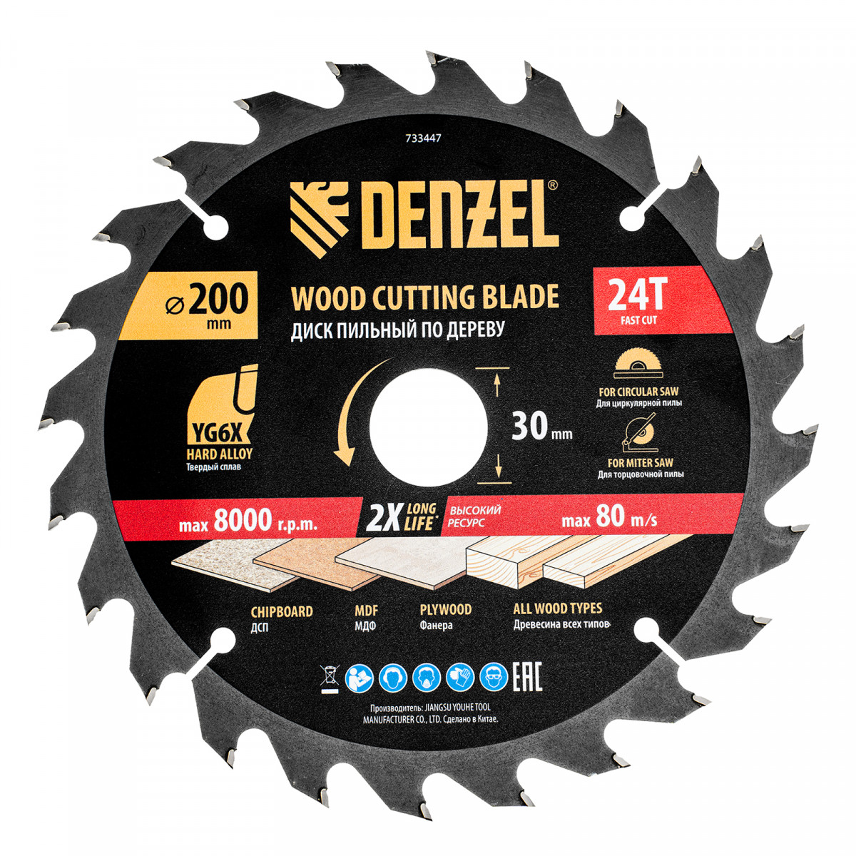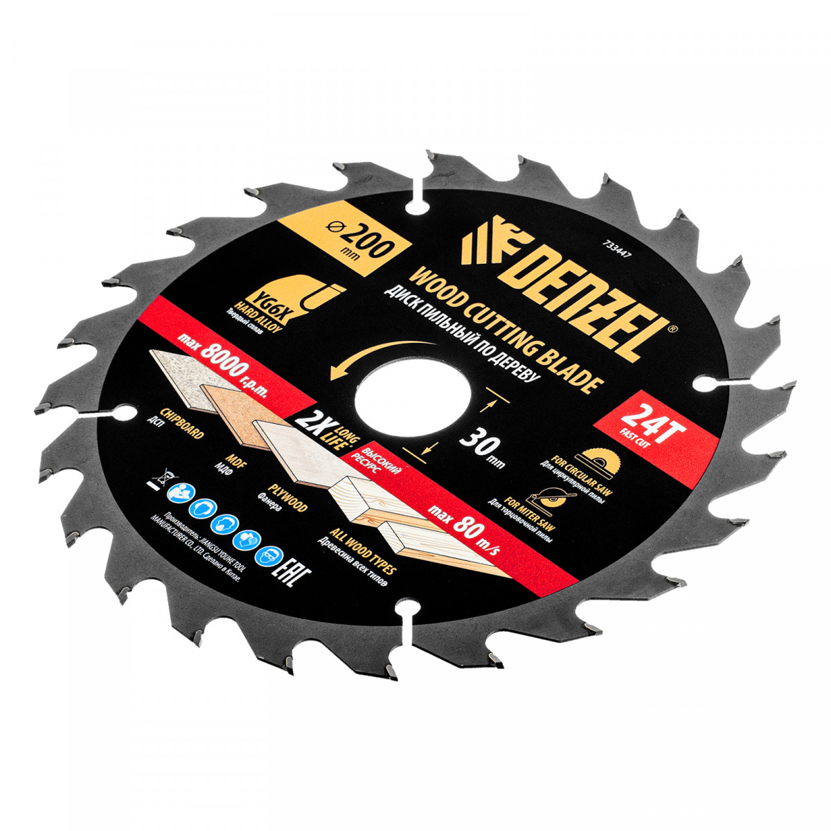 Пильный диск по дереву ф200 х 30 мм, 24 зубьев Denzel