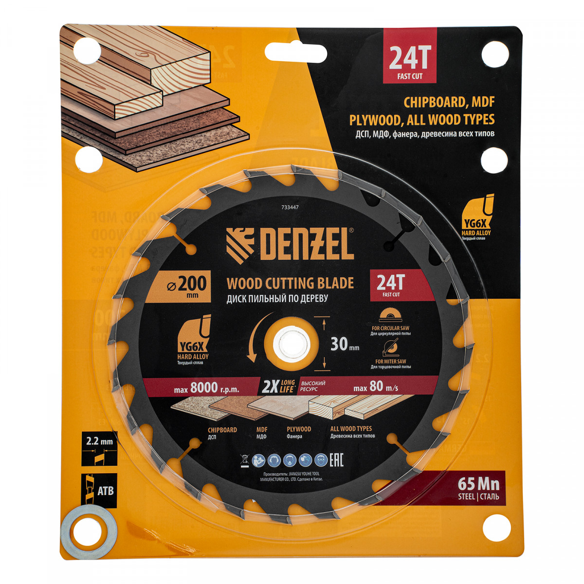 Пильный диск Denzel 733447 диаметром 200 x 30 мм, с 24 зубьями, предназначен для продольного и поперечного распила твердой и мягкой древесины, фанеры, МДФ, ДСП. 24 зуба типа ATB с режущими пластинами оптимальной геометрии обеспечивают быстрый рез. Режущие пластины из твердого сплава YG6X сохраняют рабочие свойства при интенсивном использовании. Диск устанавливается на циркулярную, торцовочную пилу или на распиловочный станок. В комплект поставки входит переходное кольцо с 30 на 20 мм, что позволяет изменить посадочный размер и расширяет возможности использования диска.
