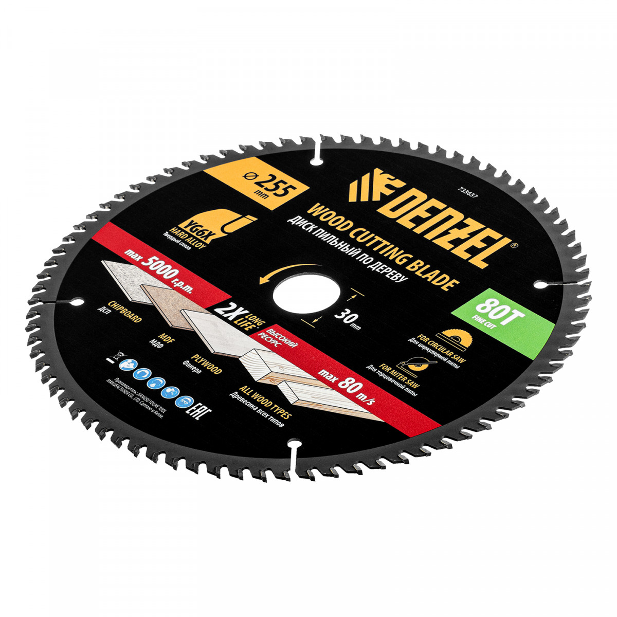 Пильный диск по дереву ф255 х 30 мм, 80 зубьев Denzel