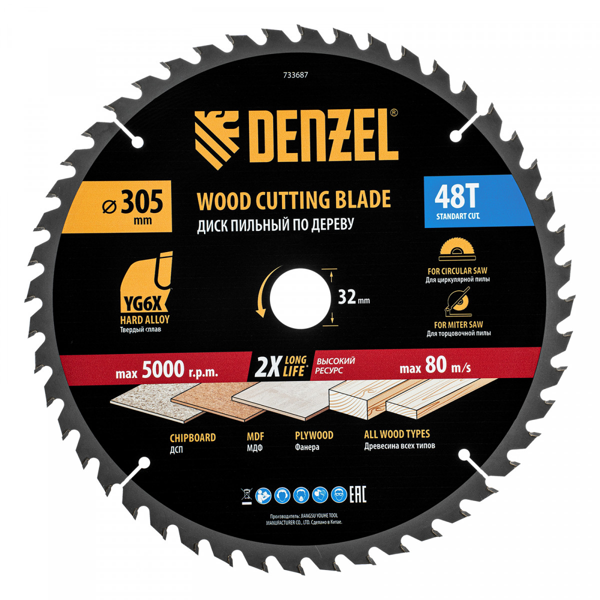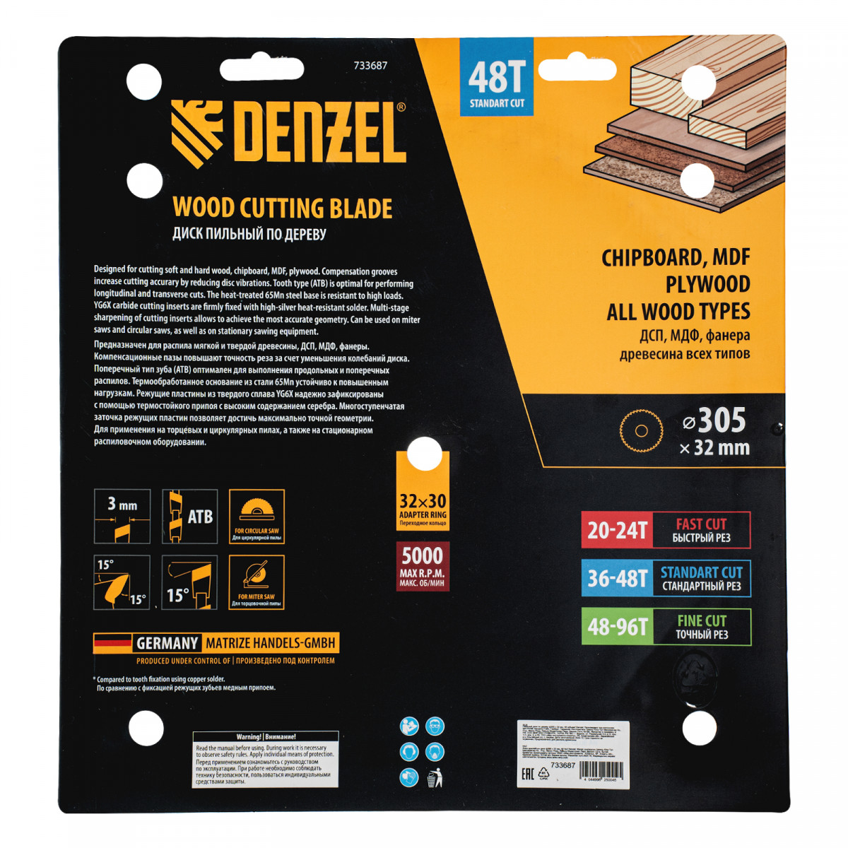 Пильный диск по дереву ф305 х 32 мм, 48 зубьев Denzel
