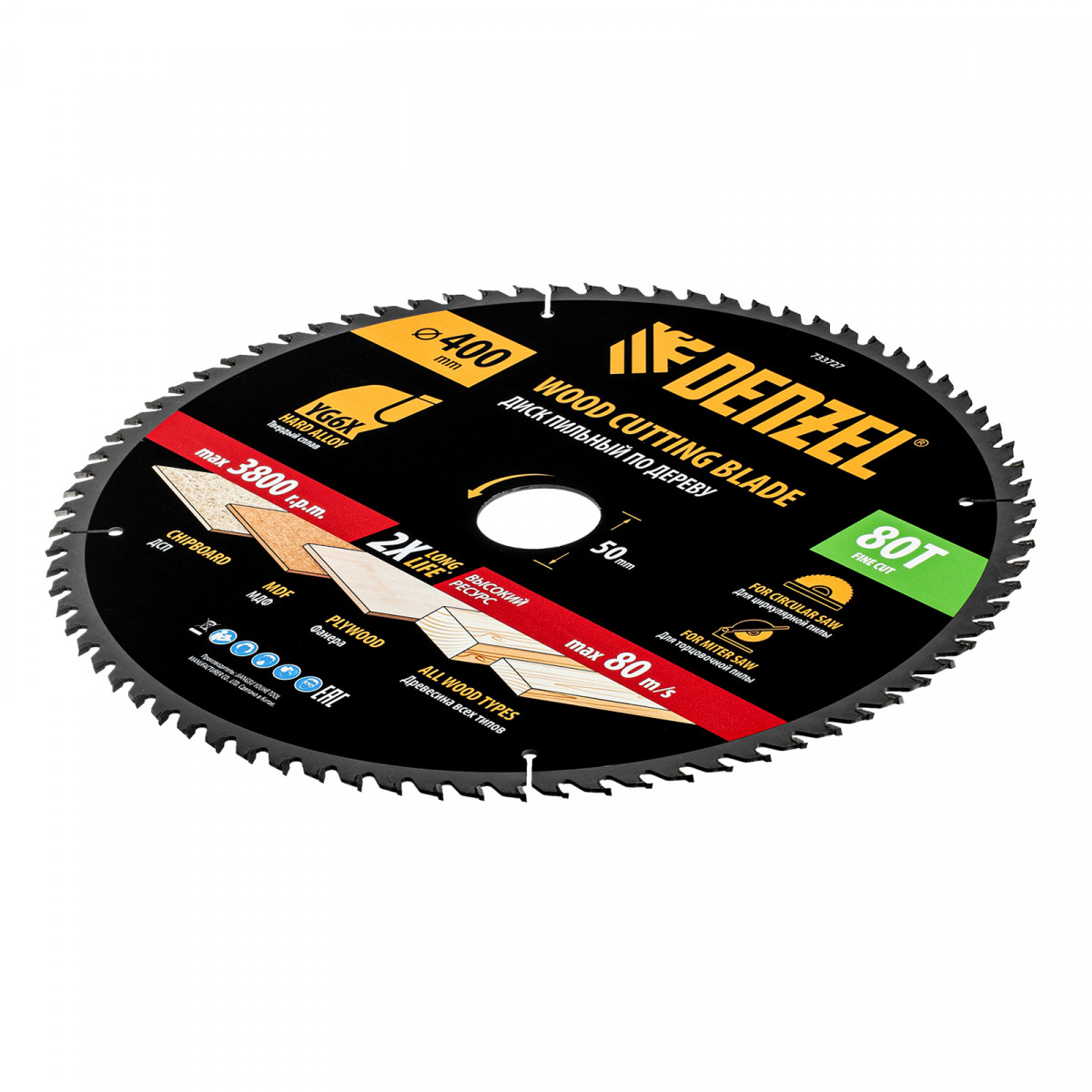 Пильный диск по дереву ф400 х 50 мм, 80 зубьев Denzel