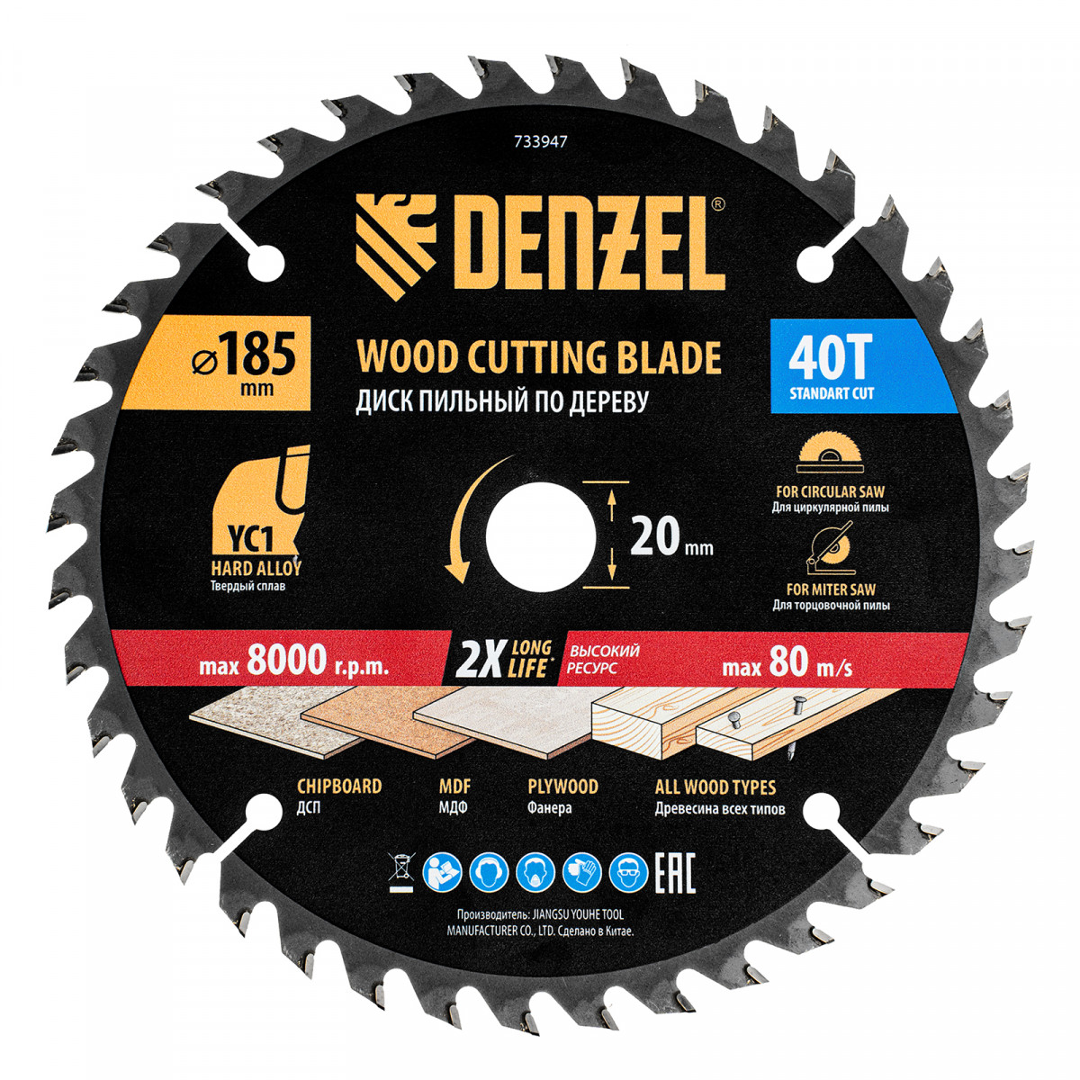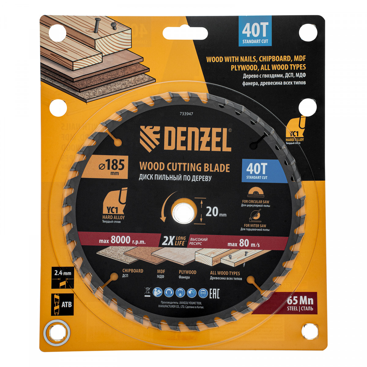 Пильный диск по дереву с гвоздями, ф185 х 20 мм, 40 зубов Denzel