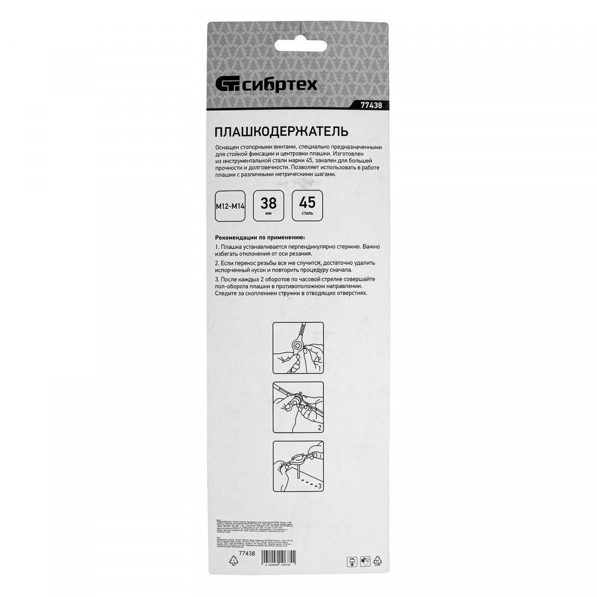 Плашкодержатель, 38 мм Сибртех