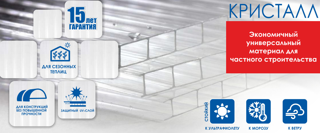 Поликарбонат сотовый КАРБОГЛАСС Кристалл 10 мм бесцветный 2,1*6 м