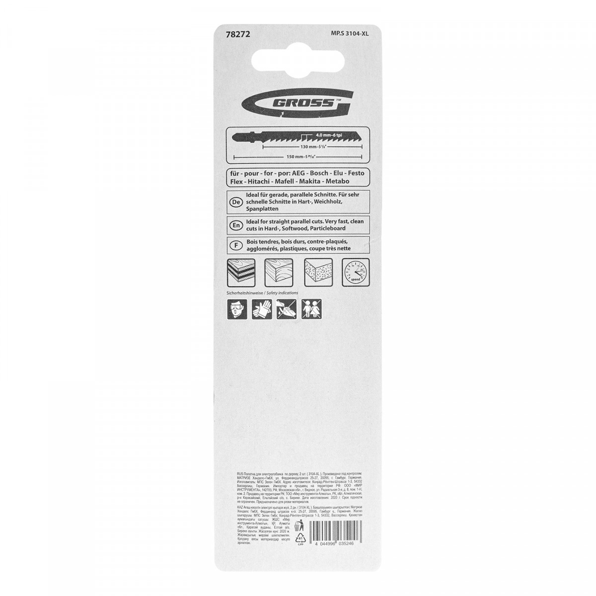 Полотна по дереву Gross 78272, 2 шт. (3104-XL), являются сменными режущими элементами для большинства современных моделей электролобзиков. Осуществляют прямой рез деревянных заготовок и изделий толщиной 6-120 мм. Высококачественные полотна пригодятся профессиональным мастерам в ходе проведения ремонтных и строительных работ.