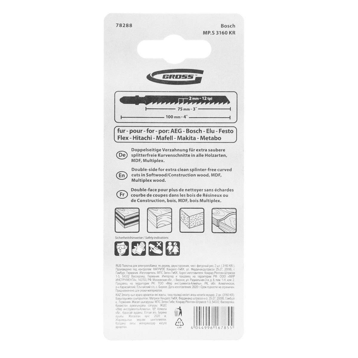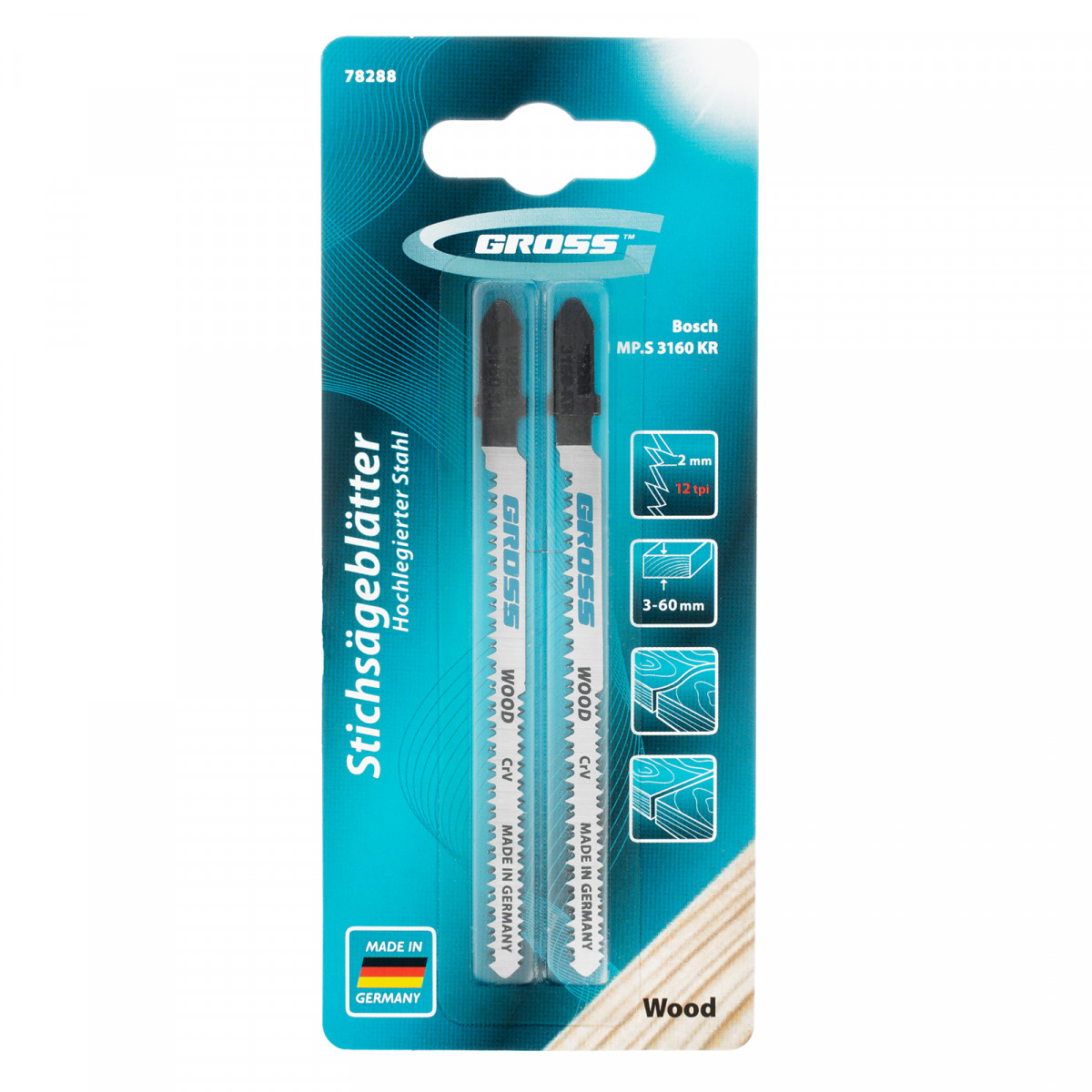 Полотна для электролобзика по дереву, двухсторонние, чистый фигурный рез, 2 шт. ( 3160 KR ) Gross