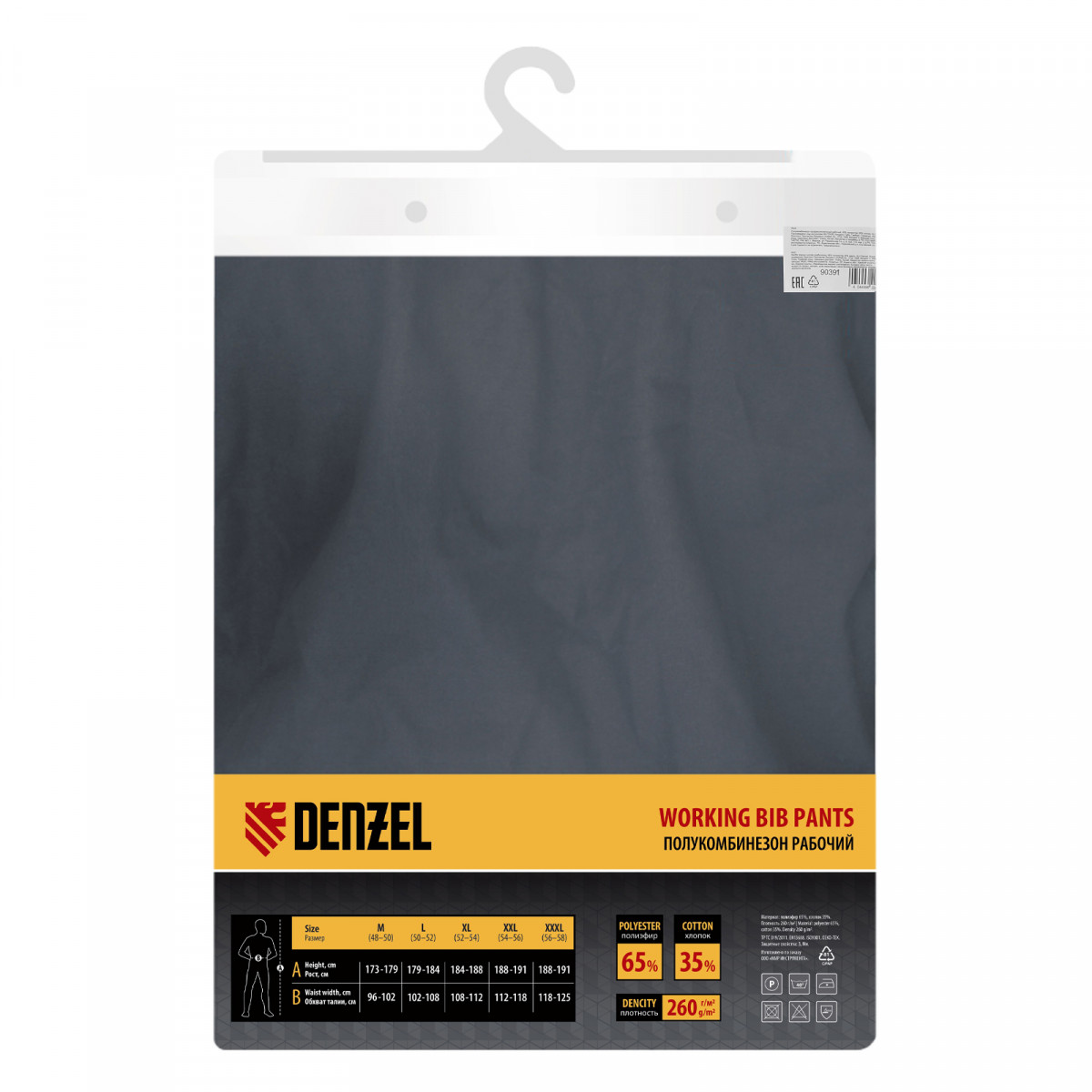 Рабочий полукомбинезон Denzel 90391 размера XXXL рассчитан на рост 186-192 см и используется для выполнения профессиональных строительных, ремонтных и производственных работ в теплое время года или в отапливаемом помещении. Защищает пользователя от общих производственных загрязнений, нетоксичной пыли, ветра и незначительных механических воздействий. Изготовлен из ткани плотностью 260 г/м2 (65% полиэстер, 35% хлопок). За счет наличия хлопковых волокон в составе ткань хорошо пропускает воздух и приятна на теле, полиэстер обеспечивает устойчивость к истиранию. Полукомбинезон выполнен в практичном темно-сером цвете.