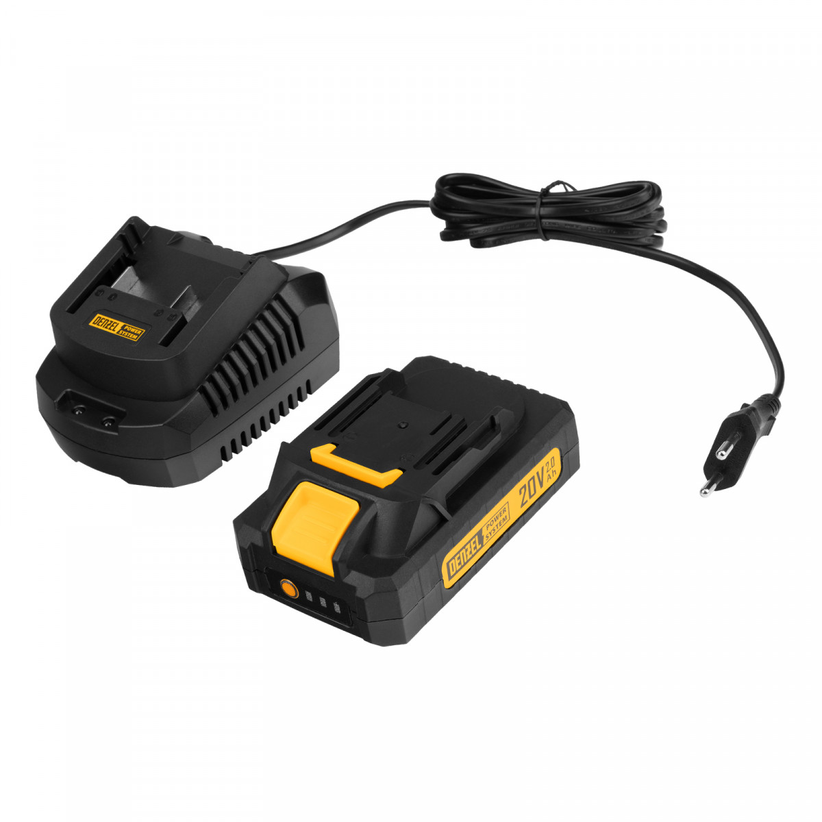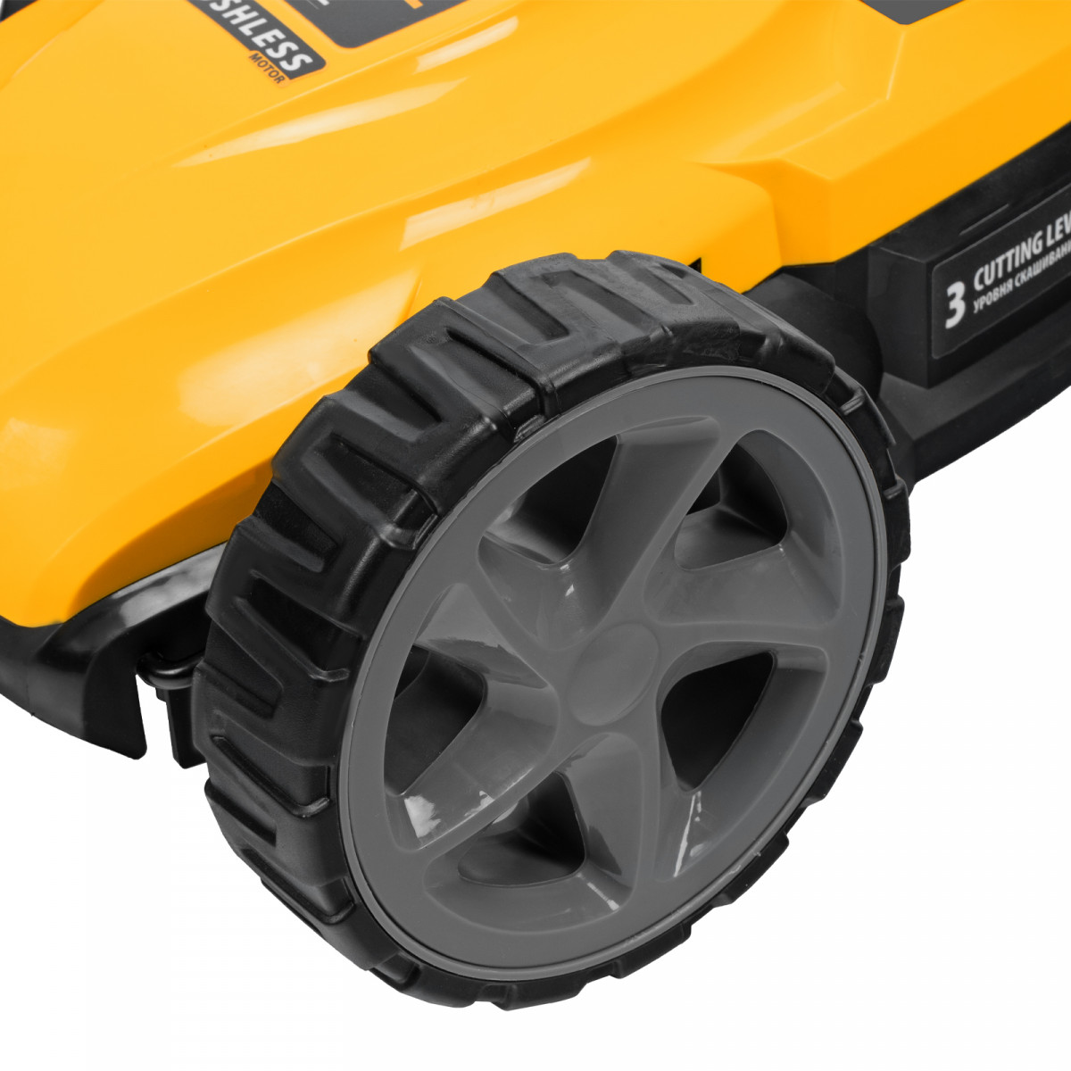 - Универсальность — газонокосилка совместима со всеми аккумуляторными батареями единой платформы Denzel Power System 20V.