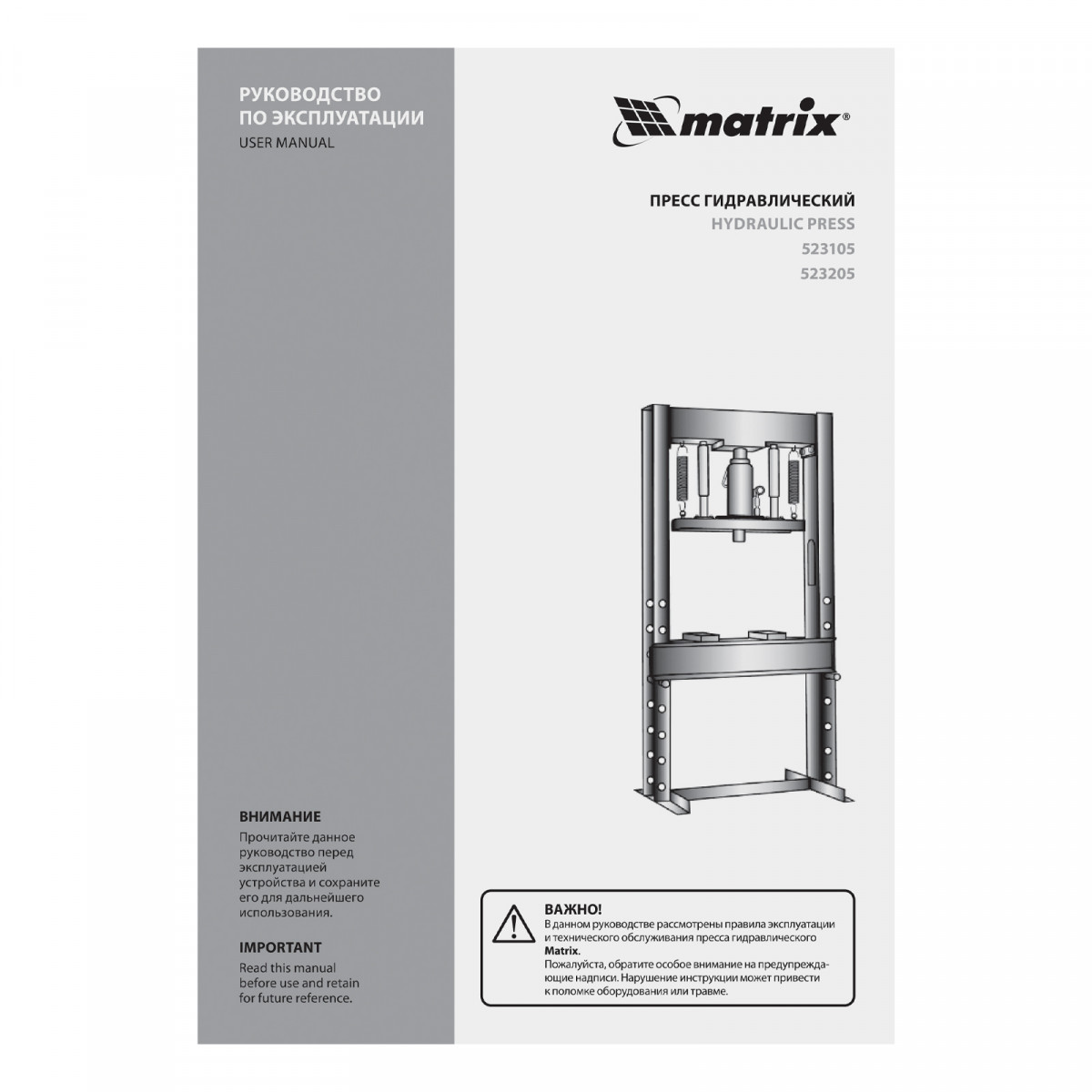 Пресс гидравлический, 12 т, 1360 х 500 х 510 мм. (комплект из 2 частей) Matrix