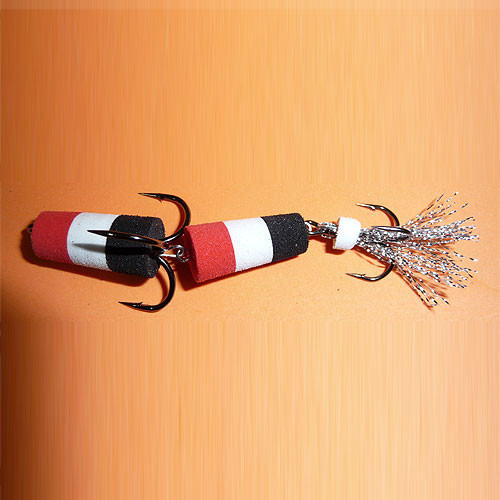 Mодель для ловли судака, щуки и сома методом джига, ловит окуня, жереха и др. Попадаются даже сазан и лещ. Применяется с грузом <чебурашка> весом 10-60 г. Обладает отличной баллистикой, что важно при ловле с берега. При хорошем клёве, рыба садится на большой тройник, при слабом - кусает за хвост и прихватывает тот тройник, что поменьше.