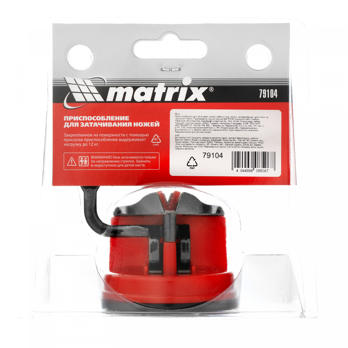 Приспособление для затачивания ножей любого типа Matrix 79104 с металлической направляющей и креплением на присоске быстро возвращает остроту затупившимся лезвиям ножей и садовых инструментов. Ножеточка будет полезна в быту — она не требует особых навыков, поэтому с ней справится каждая хозяйка.