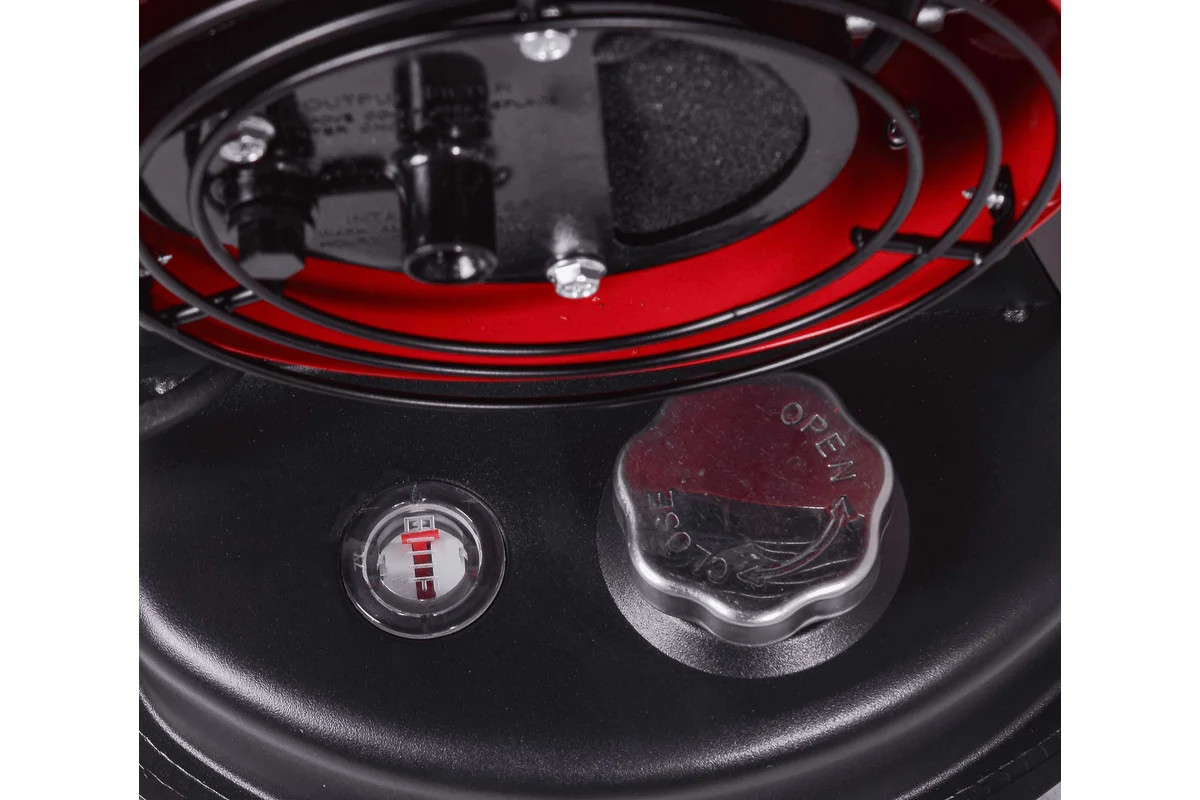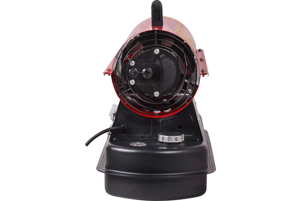 В бак объемом 12 л можно заливать дизтопливо или керосин. При максимальном расходе дизеля 0,79 кг/ч тепловая пушка выдает мощность 10 кВт. Режим работы, интенсивность нагрева и расход топлива регулируются механическим термостатом. Он автоматически поддерживает температуру окружающей среды на заданном уровне.
