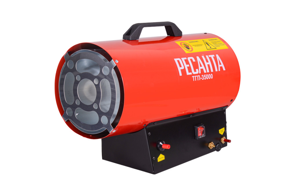 Тепловая пушка Ресанта ТГП-35000 способна быстро и эффективно обогреть нежилое помещение. Чаще всего применяют такие устройства на строительных площадках, в производственных цехах, сельскохозяйственных ангарах. Одно из главных преимуществ теплопушки – простота применения.
