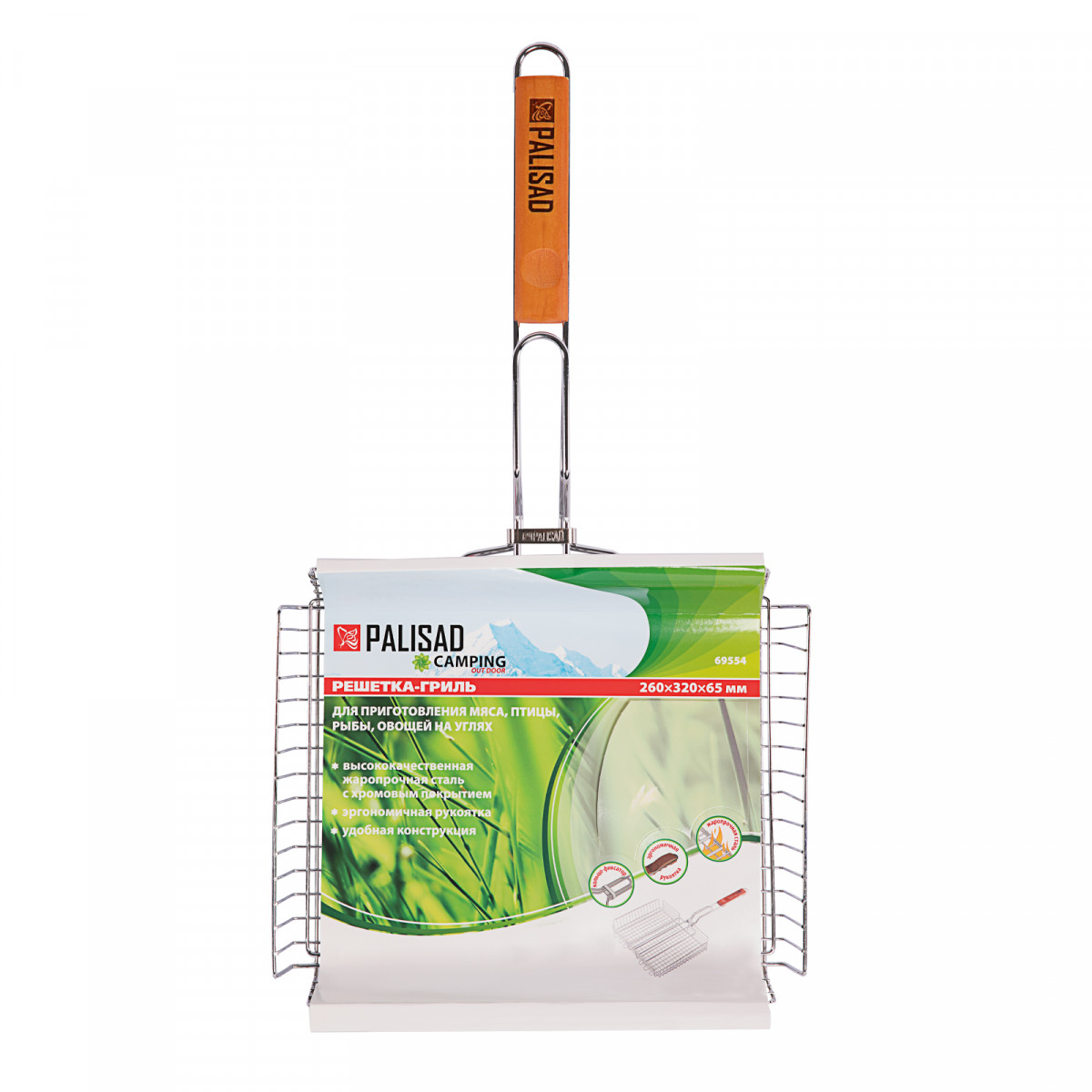 Объемная хромированная решетка гриль Palisad Camping 69554 размером 260 х 320 х 65 мм позволяет легко жарить пищу с двух сторон в мангале. Объемная конструкция решетки с возможностью регулировки высоты позволяет приготовить крупные куски мяса и куриную тушку без потери сочности.