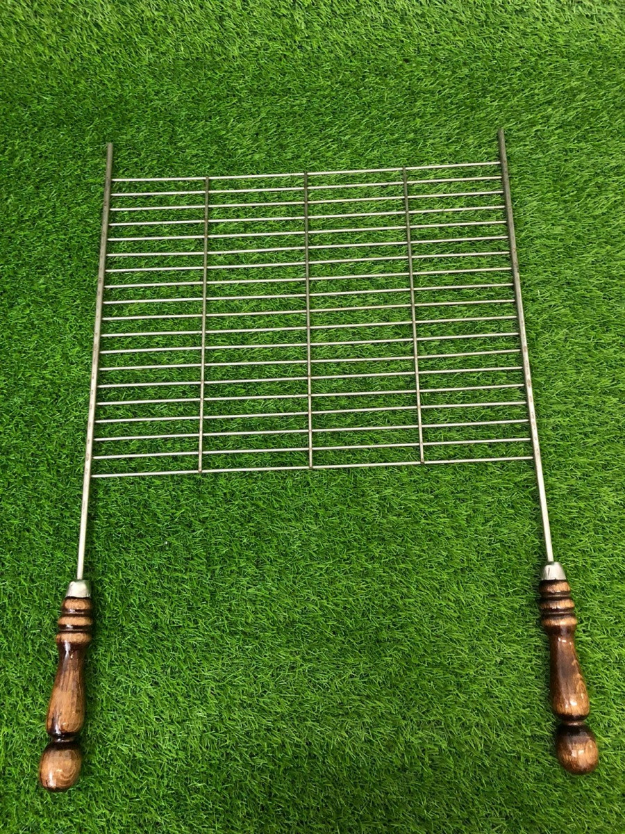 Сетка на мангал изготовлена из нержавеющей стали, с деревянными ручками. В отличии от чугунных решёток гриль сетки из нержавейки лёгкие и не дорогие. Для приготовления мяса, курицы, овощей, фруктов, грибов. Диаметр прутков 3 мм.