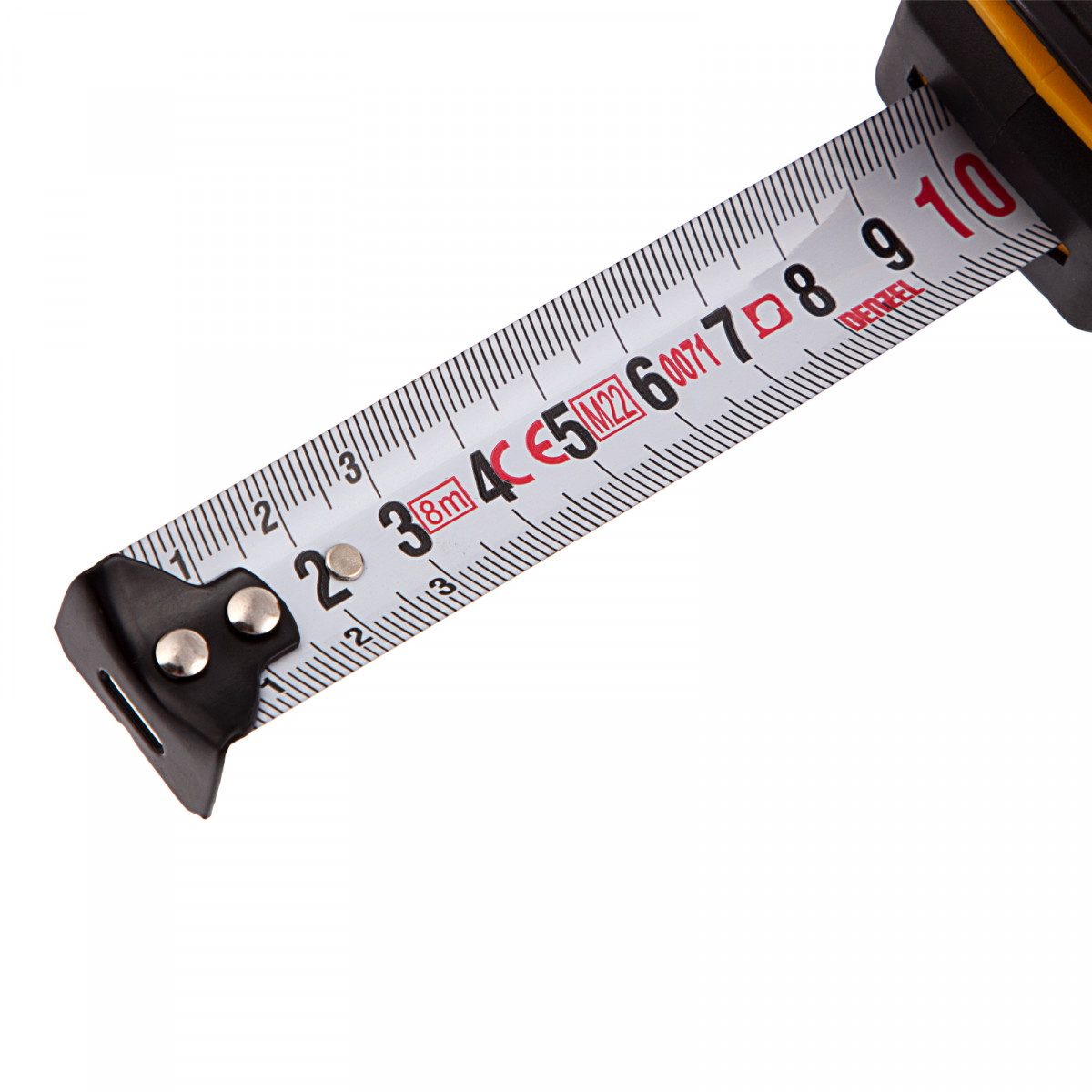 Рулетка Denzel 31544 в двухкомпонентном корпусе, с кнопкой-паузой, с полотном шириной 25 мм и длиной 8 м, используется для измерения расстояний и размеров предметов. Удобна для работы в труднодоступных местах. Стальная лента с эмалевым покрытием и защитной пластиной в месте крепления зацепа рассчитана на долгий срок службы. Рулетка будет полезна во время строительства и ремонта, а также пригодится в быту.