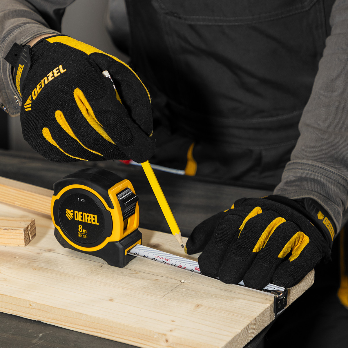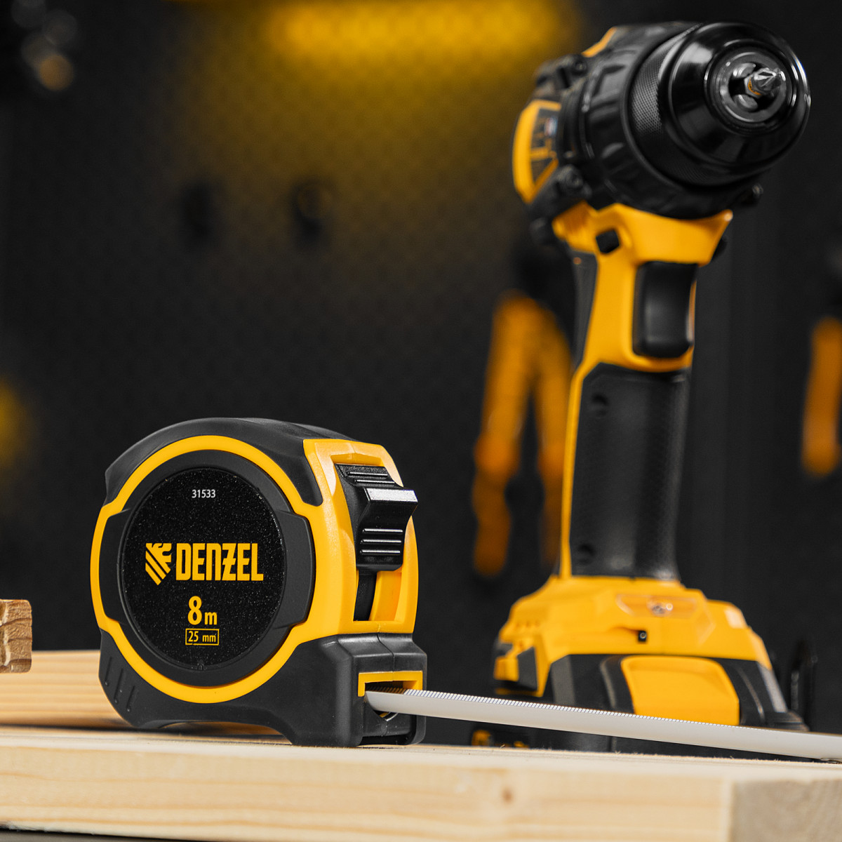 Рулетка 8м х 25мм, двухкомп. корпус, магнитный обрезиненный зацеп Denzel