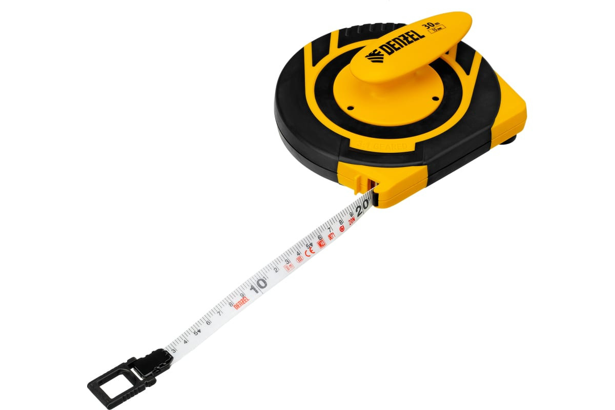Рулетка геодезическая 30 м х 15 мм закрытый корпус фиберглассовая лента DENZEL