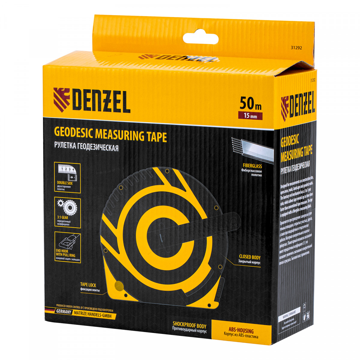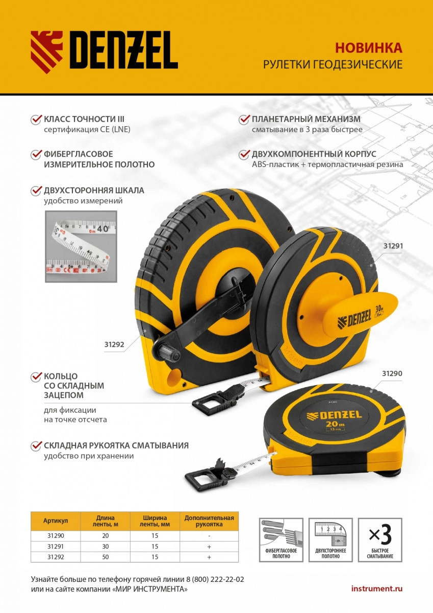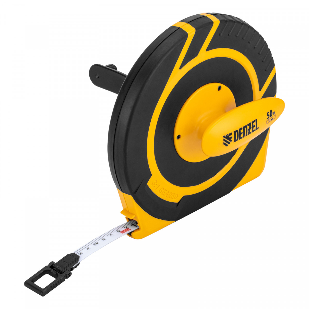 Рулетка геодезическая 50 м х 15 мм, закрытый корпус, фиберглассовая лента Denzel