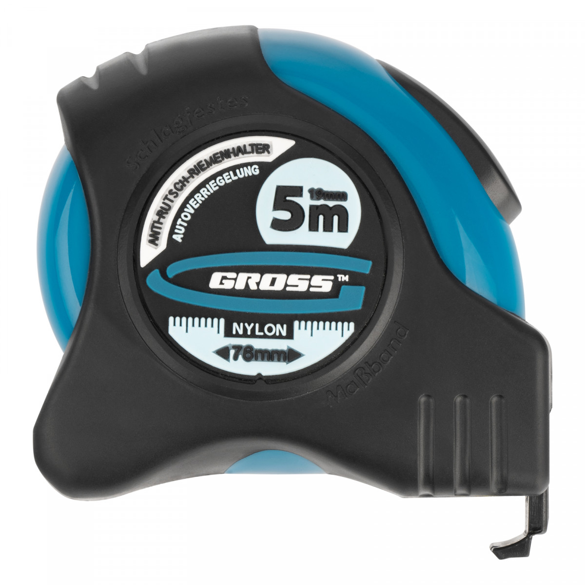Рулетка "Schlagfest",5 м x 19 мм,магнитный обрезиненный зацеп,двусторонняя шкала,Нейлоновое покрытие,автоматическая фиксация Gross