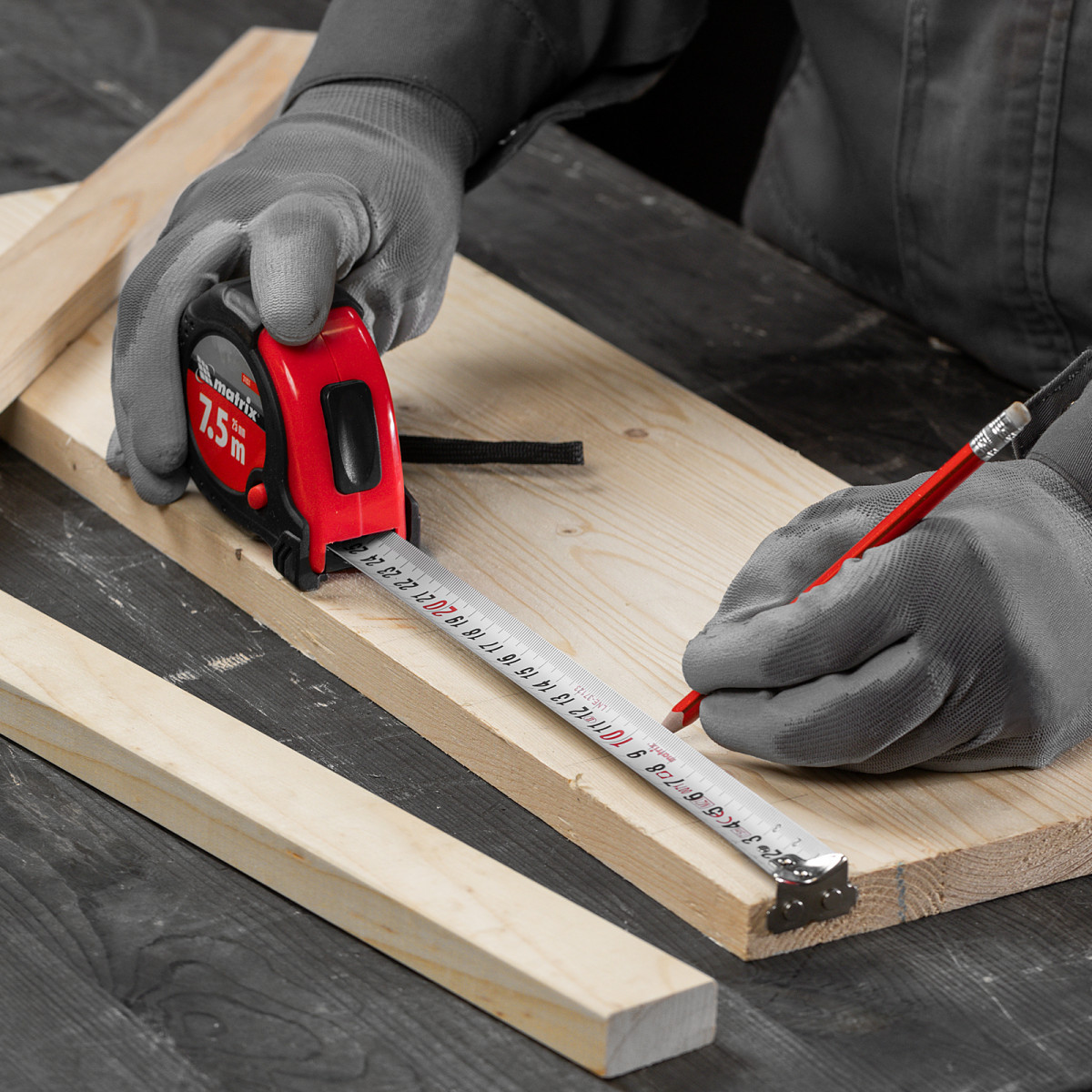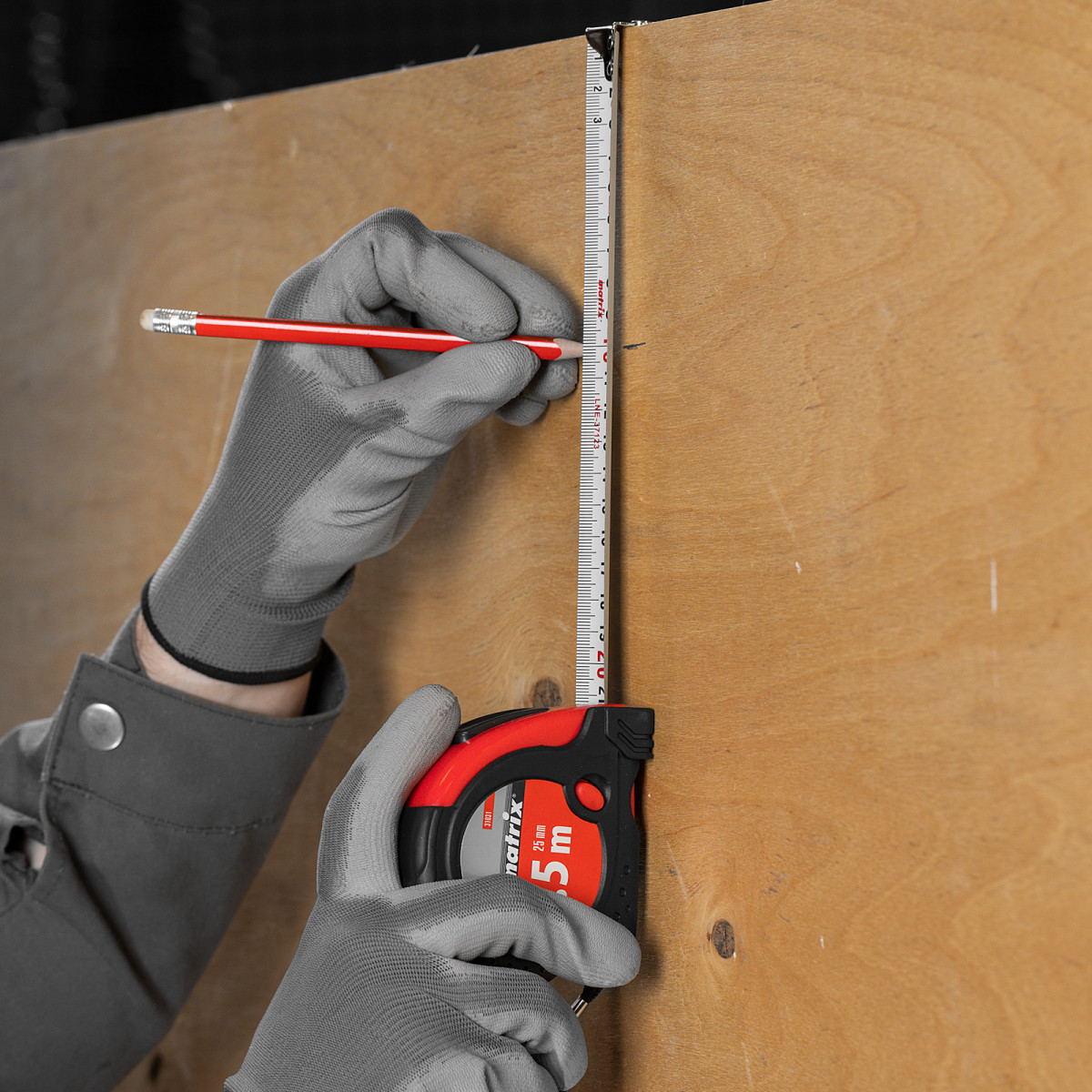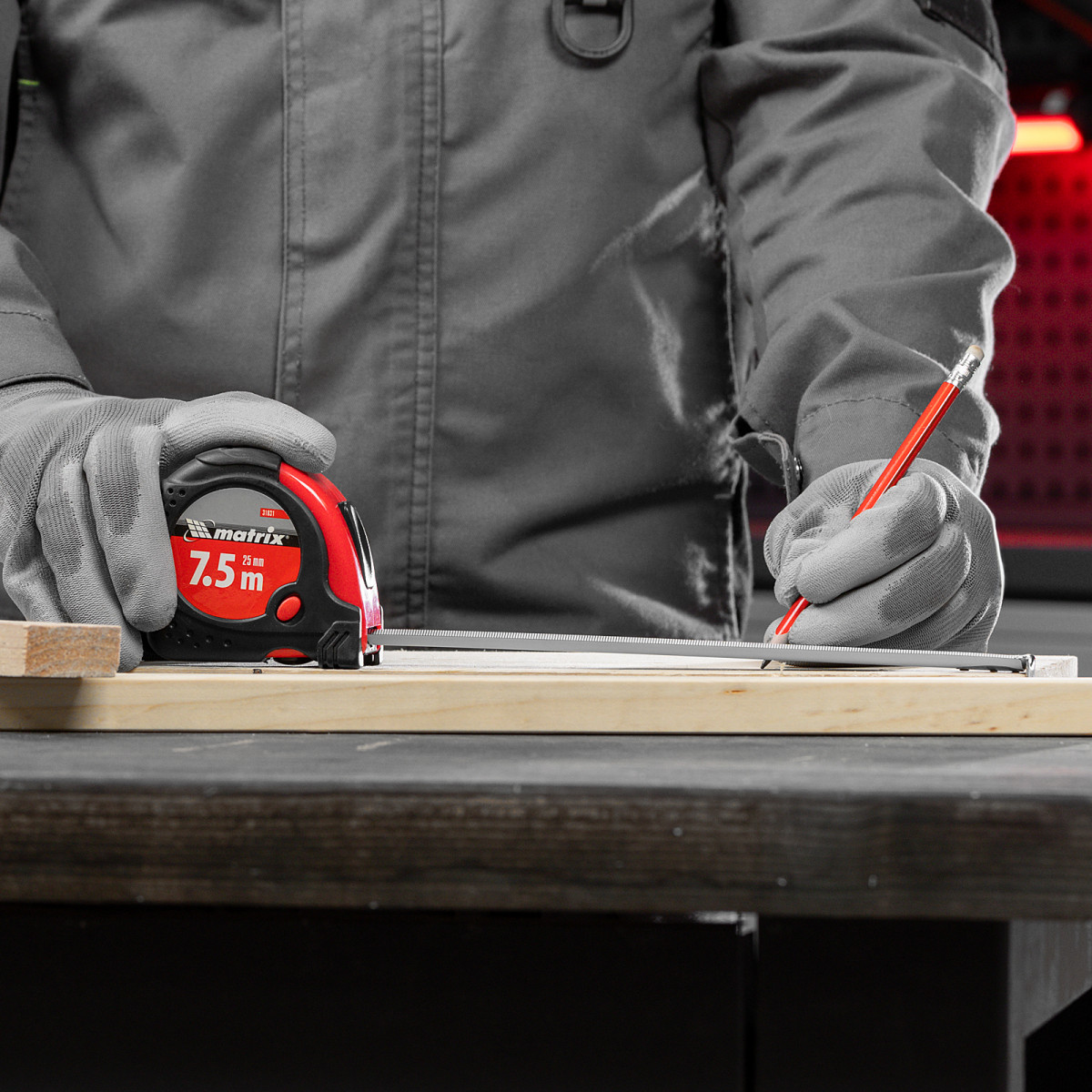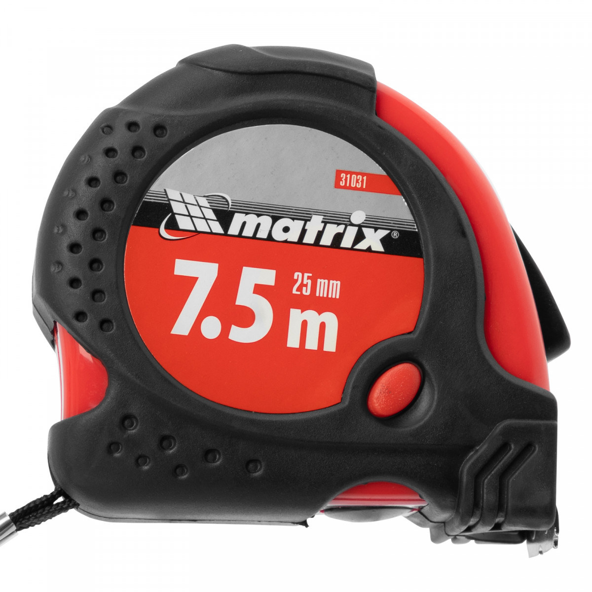 Рулетка Matrix Status magnet fixation 31031 с полотном длиной 7,5 м и шириной 25 мм, в обрезиненном корпусе, имеет зацеп с магнитом и предназначена для определения размеров предметов и расстояний. Цена деления составляет 1 мм, класс точности 2. Удобна для работы с металлическими изделиями: магнитный ограничитель надежно фиксируется на их поверхности. Инструмент будет полезен для проведения ремонтных и строительных работ, также пригодится в быту.
