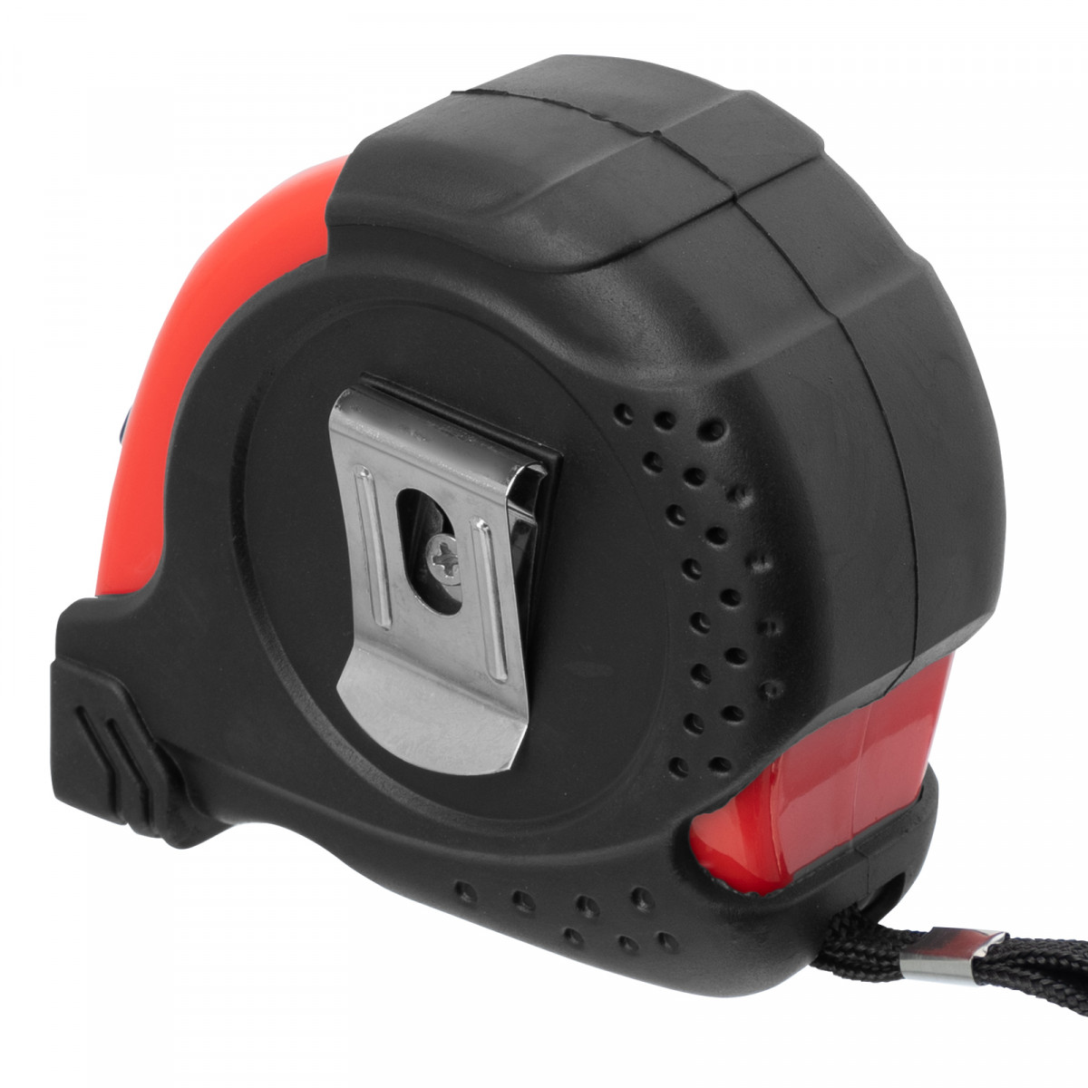 • Дополнительные возможности — шнурок для крепления на запястье уменьшает риск падения рулетки, на боковой поверхности корпуса имеется зажим для фиксации рулетки на поясном ремне.