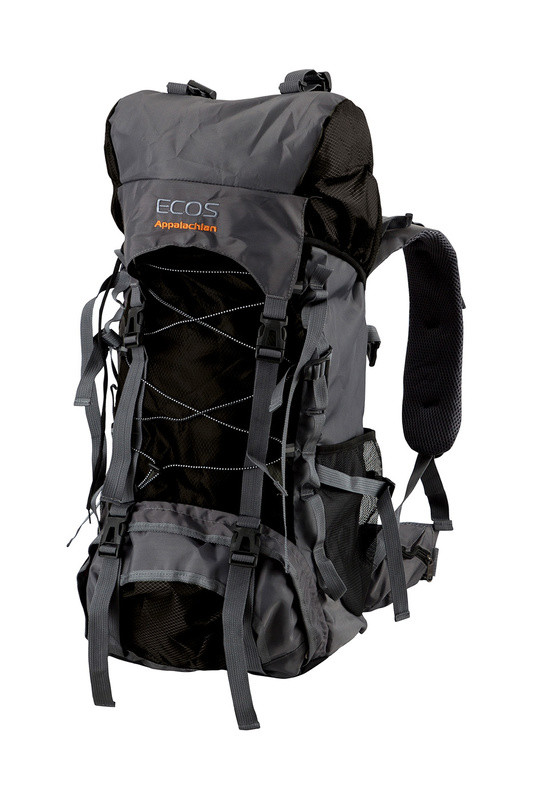 5. 5. Возможность крепления снаряжения на рюкзак:  - стяжки на верхнем клапане для крепления предметов; - разноуровневая система крепления треккинговых палок или ледорубов,  а также необходимых предметов с помощью карабина; - вертикальные стропы для крепления одеяла, коврика, палатки;  - боковые горизонтальные стропы для крепления одеяла, коврика, палатки и т.д. 6. Конструкция лямок и спинки: лямки и разгрузочный ремень из дышащего пеноматериала, нагрудная стяжка регулируется по высоте, регулируемая высота лямок, петли для рук,  регулируемая спинка, каркас из сьемных алюминиевых «лат», придающий спине рюкзака вертикальную жесткость