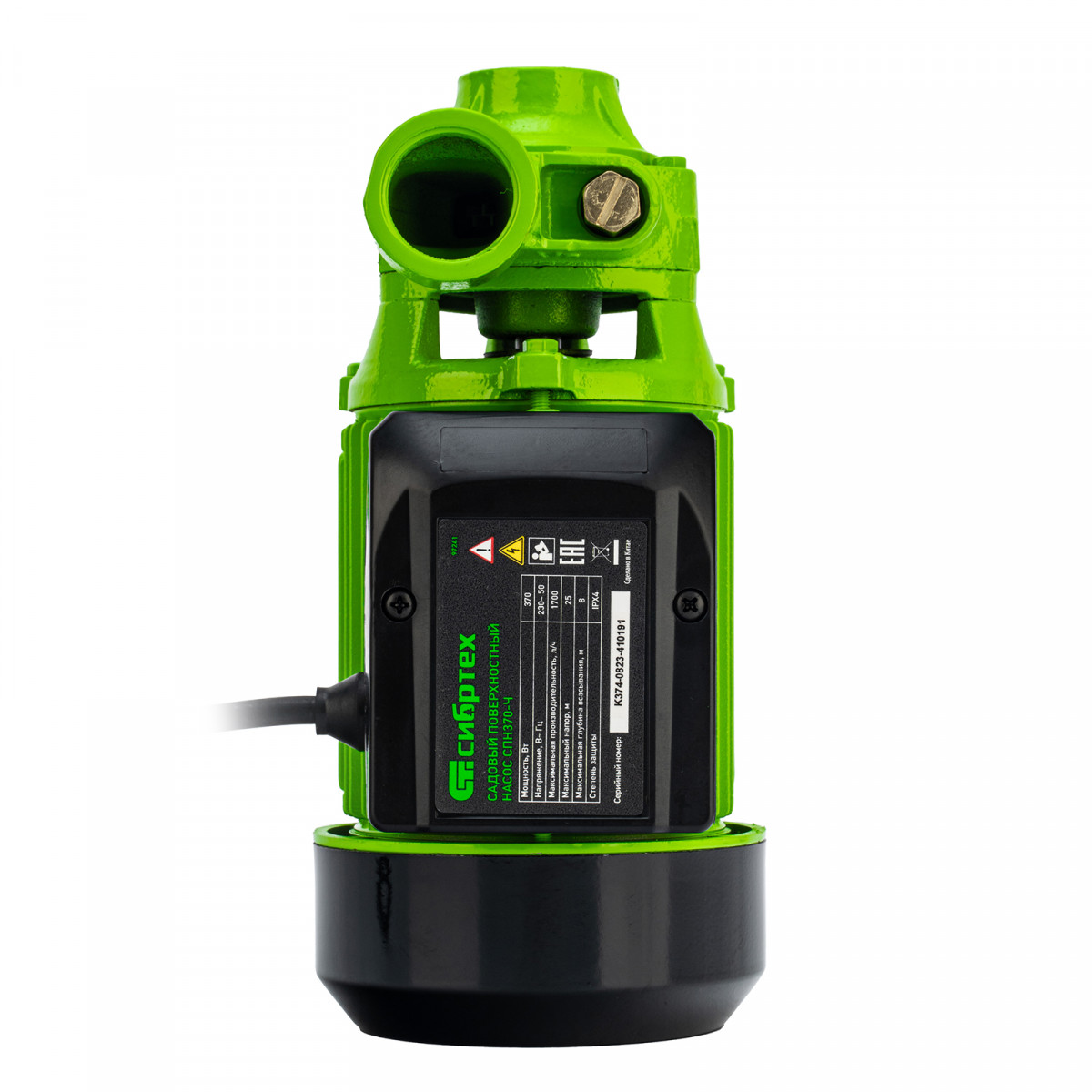 Садовый поверхностный насос СПН370-Ч, 370 Вт, напор 25 м, 1700 л/ч, чугун Сибртех
