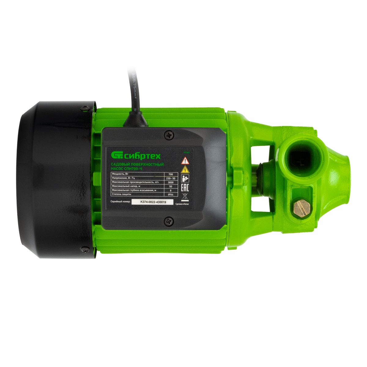 Садовый поверхностный насос СПН700-Ч, 700 Вт, напор 50 м, 3000 л/ч, чугун Сибртех