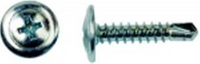 Саморез с полусферической головкой и напрессованной шайбой. Широко применяются при проведении отделочных работ, мебельном производстве, машинстроении. Имеют резьбу с мелким шагом и наконечник сверло (способность крепления листового металла до 2,0 мм без предварительного засверливания). Оцинкованное покрытие предохраняет саморез от коррозии.