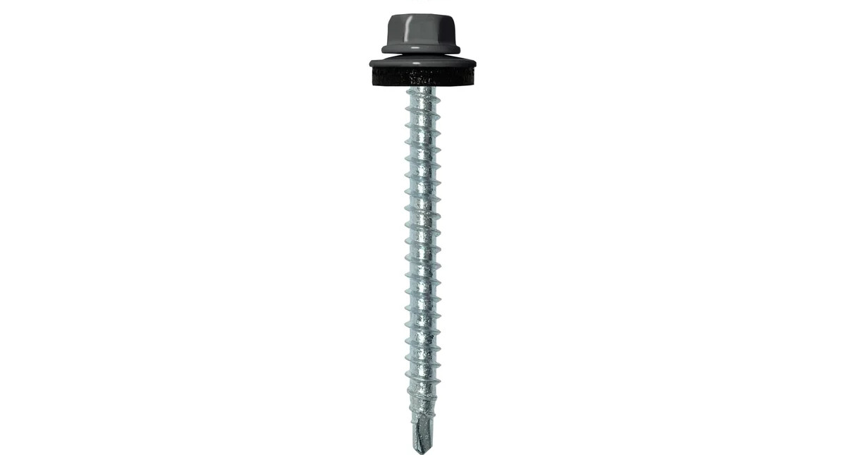 Используется при монтаже профнастила и металлочерепицы к конструкциям из металла или древесины. Имеет шестигранную головку с шайбой и прокладку EPDM из синтетического каучука.