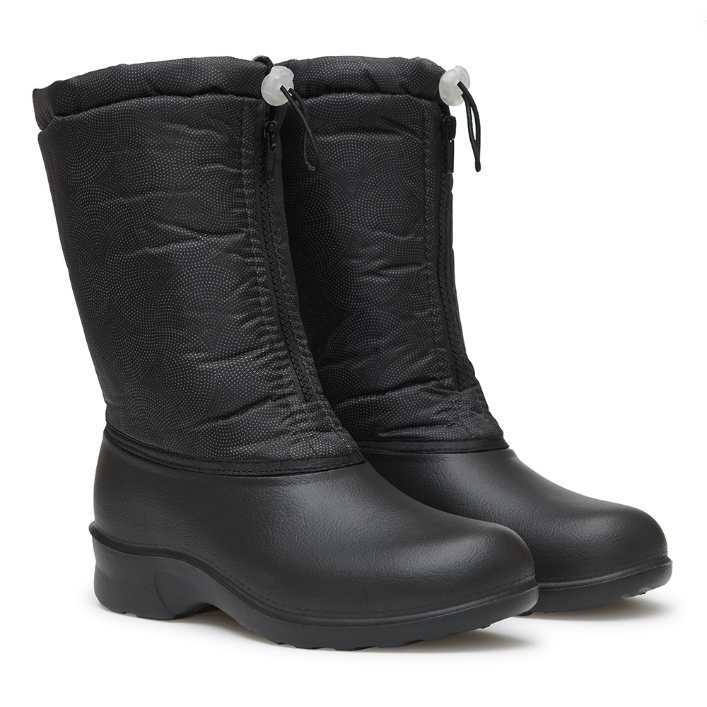 Женские сапоги с молнией созданы для холодного времени года. Низ обуви - материал ЭВА DU-Care. Верх обуви изготовлен из водоотталкивающей ткани, сдублированной поролоном. Подкладка из ткани ПВЧ также сдублированной поролоном. Благодаря этому обувь очень хорошо сохраняет тепло, обладает достаточной воздухопроницаемостью, комфортностью, создает надежный барьер проникновению холода. Информация для оптовиков: