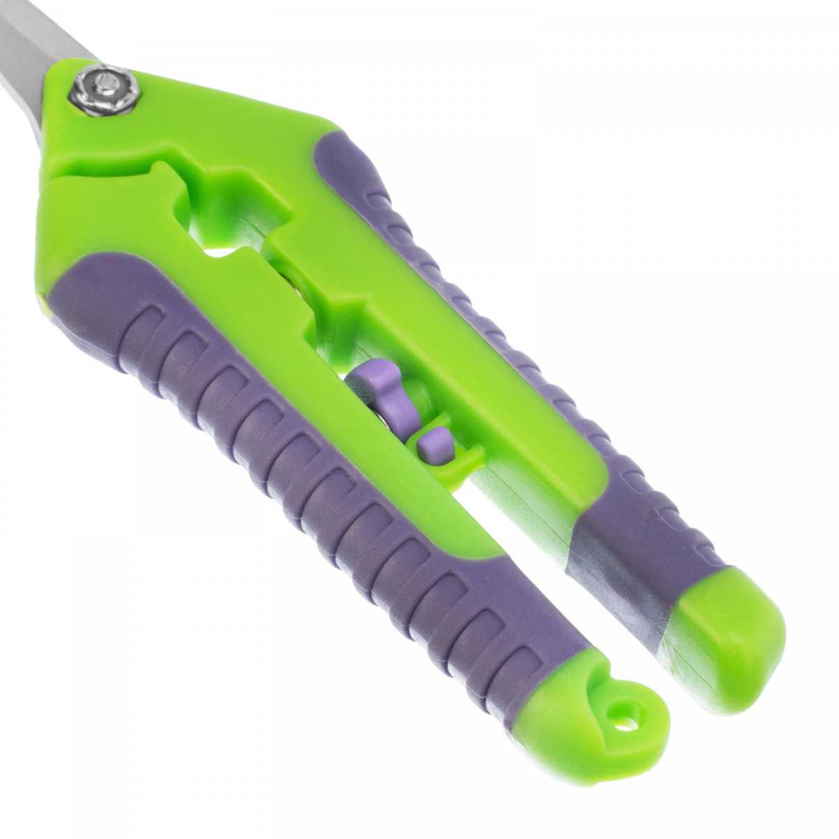- Устойчивость к разрушению — лезвия изготовлены из нержавеющей стали, рабочие поверхности покрыты маслом для дополнительной защиты от ржавчины, рукоятки из полипропилена невосприимчивы к воздействию ультрафиолета.