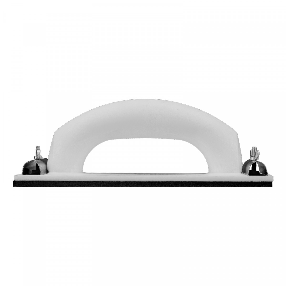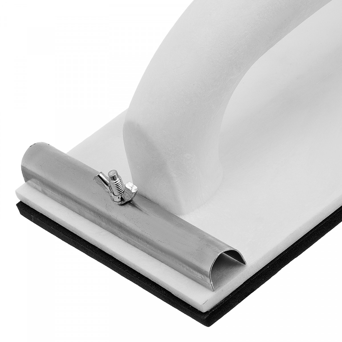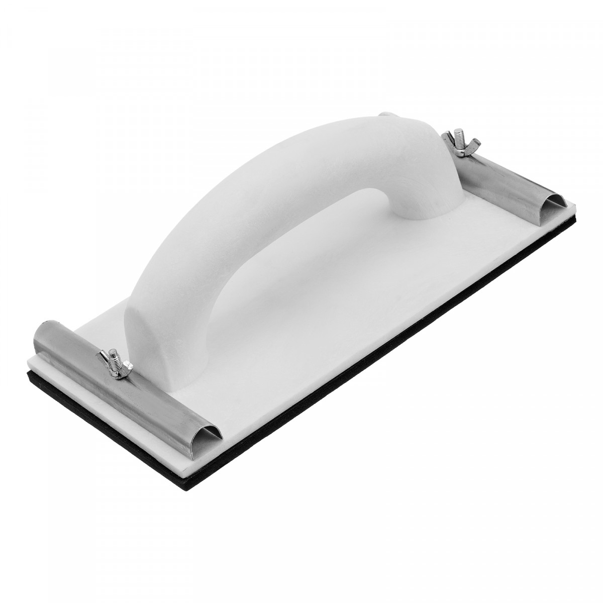 Пластиковый сеткодержатель Matrix 75853 с подошвой 230 х 120 мм, с зажимами, используется для ручного шлифования деревянных, шпатлеванных, металлических, пластмассовых и прочих твердых поверхностей. Сеткодержатель фиксирует абразивную стеклосетку или шлифлист и позволяет удалять старые отделочные покрытия, подготавливать поверхность под покраску, а также выполнять чистовую обработку.