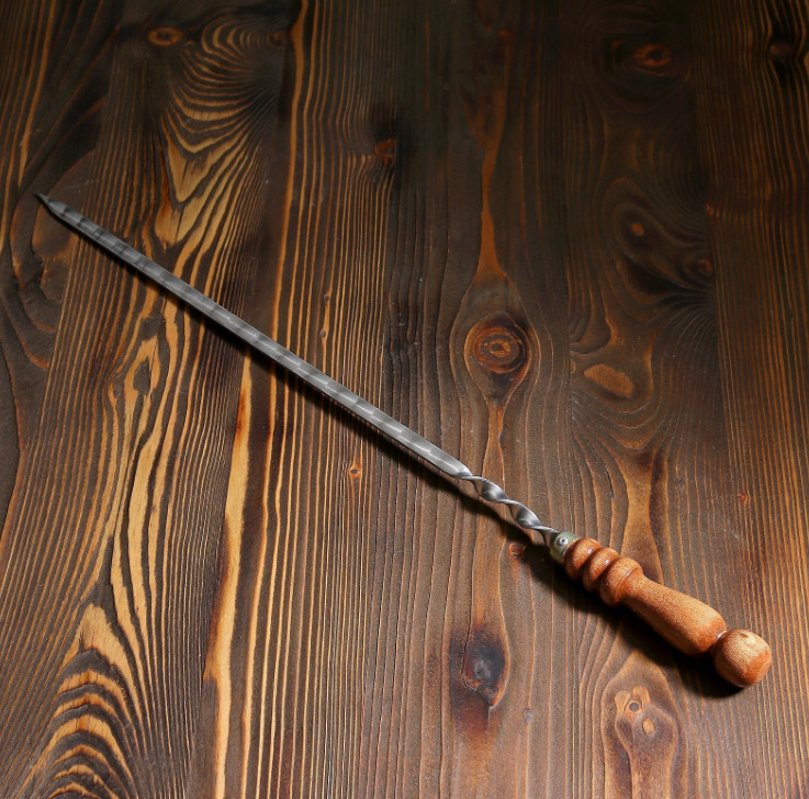 Резная деревянная рукоять не только придает шарм внешнему виду шампура, но и обеспечивает удобный захват и предотвращает ожоги.