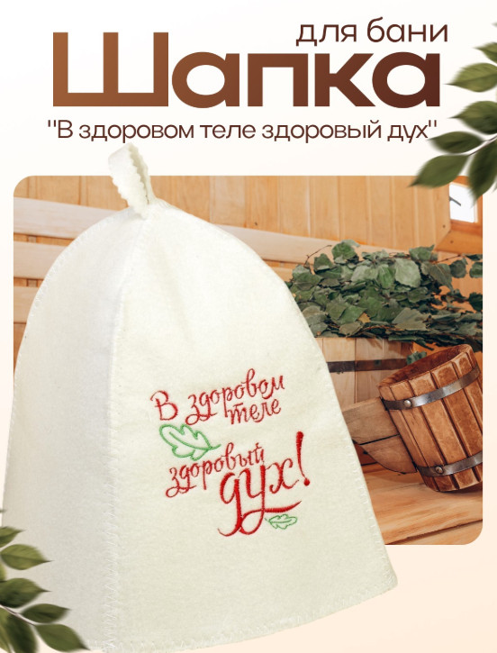 Шапка для бани и сауны «В здоровом теле здоровый дух» — идеальный спутник для ценителей здорового образа жизни.