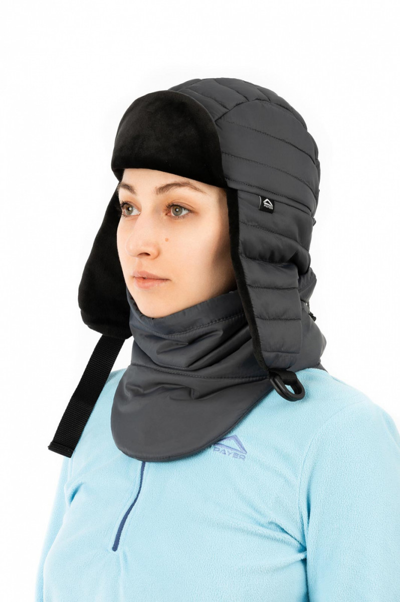 Шапка-ушанка зимняя стеганая таффета, графит Нова-Текс