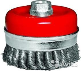 Щетка изготовлена из крученой стальной проволоки. Применяется для грубой очистки металлических поверхностей от ржавчины и зачистки сварных швов. Тип посадки – М14.